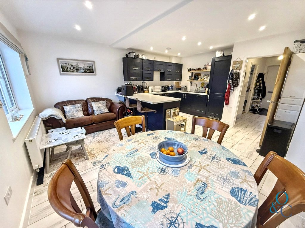 The bright and airy interior has accommodation arranged over three levels, the welcoming entrance hallway with storage cupboard and cloakroom, stairs to first floor and access to bedroom 4 and the open-plan layout seamlessly connects the dining, and kitchen areas, creating a welcoming atmosphere for family gatherings and social events.