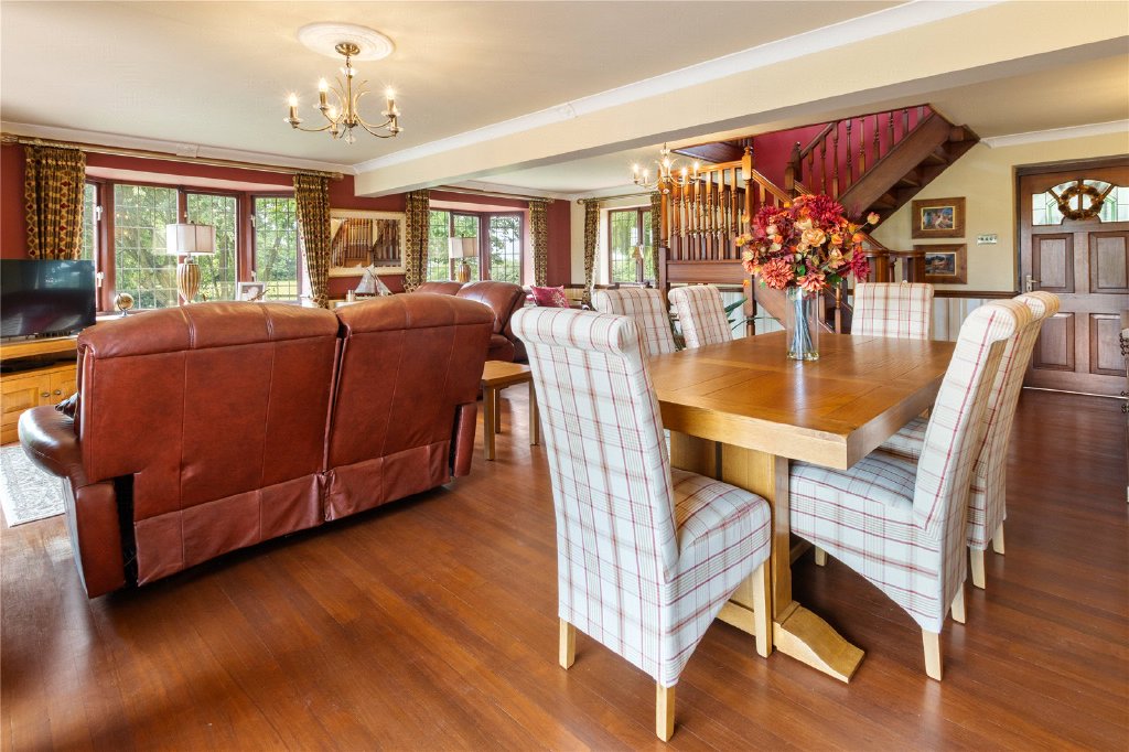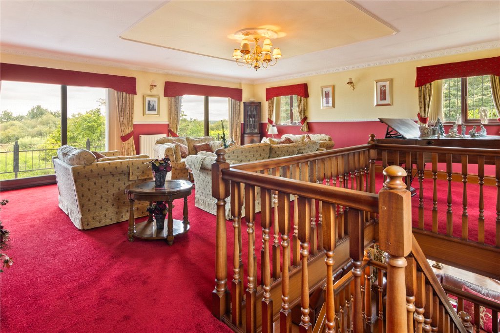 The property is set within approximately 3.5 acres of beautifully landscaped and thoughtfully designed grounds. A secure gated entrance opens onto a gravelled driveway with a central island and ample parking space. The garden areas wrap around the home, with patio terraces, raised beds, and charming features such as pergolas, hedging, and low stone walls. Two paddocks, an orchard, and extensive lawned spaces provide privacy and scope for outdoor hobbies or even equestrian use. Several outbuildings are included, such as a detached garage, store room, greenhouse, and a striking dovecote-style sunroom. The property also includes a beautifully refurbished two-bedroom detached lodge, ideal for guests, extended family, or AirBnB use.