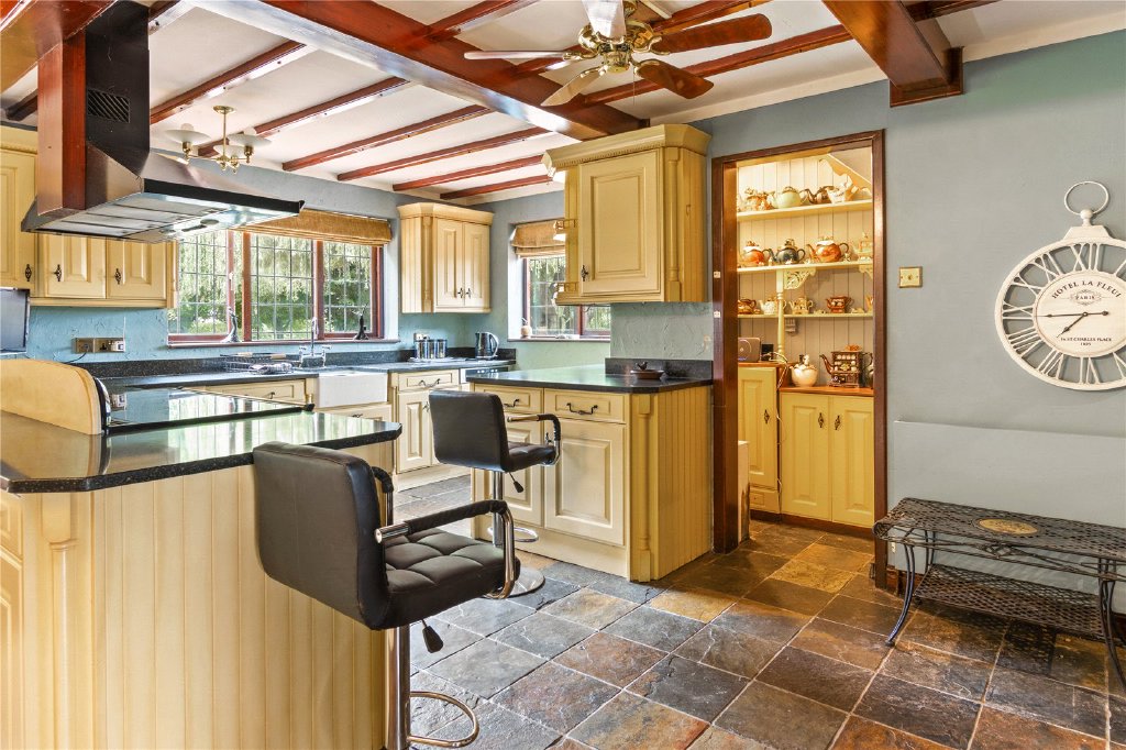 The interior flows seamlessly from the welcoming entrance porch into a generous dining living room, with patio doors opening out to the garden. The open-plan living kitchen is perfect for entertaining, featuring granite worktops, Belfast sink, range cooker, and a walk-in pantry. The main bedroom enjoys a luxurious en suite with a steam shower and fitted furniture, while further bedrooms are spread over the mill levels, each offering charm and far-reaching views. Additional features include multiple staircases, a utility room, family bathroom, study area, and a wealth of period-style details throughout.