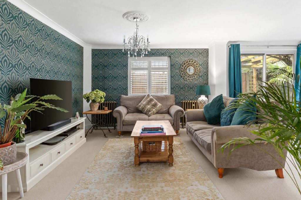 The front door opens into a large inviting hallway that is filled with light via the two Velux roof lights. Off the hallway one finds a nicely appointed downstairs wc and a utility lobby that in turns leads into the large double garage. There is a further spacious inner hallway with stairs leading up to the first floor and a useful storage cupboard beneath. A cosy snug is found at the front of the house with an attractive fireplace with wood burning stove. A lovely room equally ideal as a study or snug. In the centre of the house one finds the heart of the home, the kitchen/dining/family room. Well fitted with a good range of units with granite worktops, glazed back lit wall cupboards and tiled surrounds. Double glazed door and window to the rear and a double glazed bay window to the front aspect. There is an attractive redbrick fireplace/chimney breast and plenty of space for the breakfast table and for family and friends to congregate. Glazed double doors open into the living room. A lovely large and bright triple aspect room with double glazed windows and patio doors opening onto the garden.