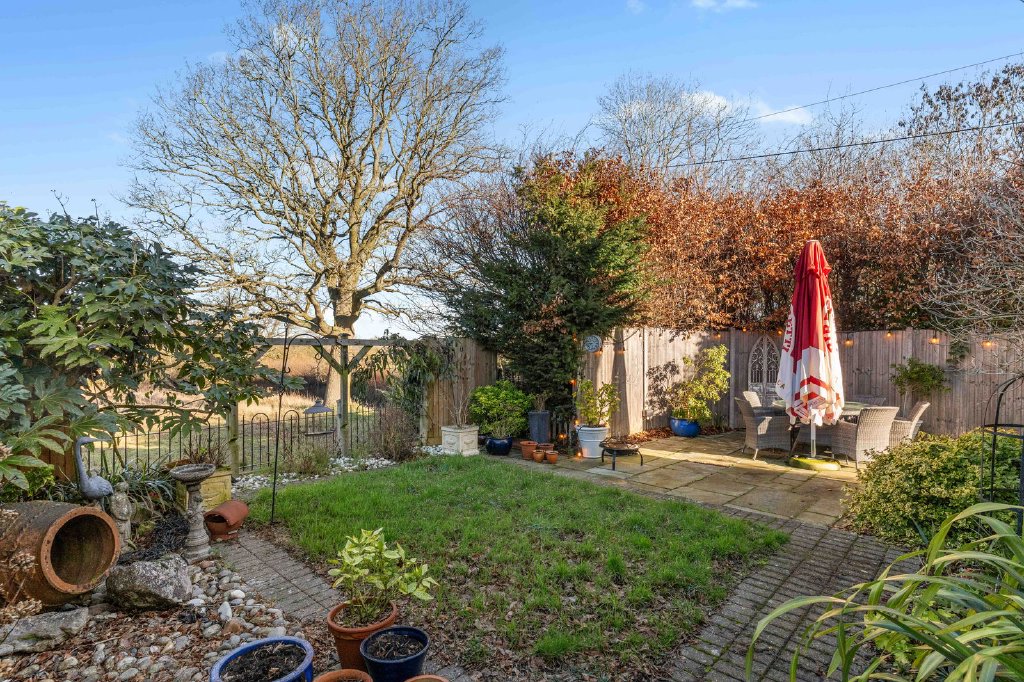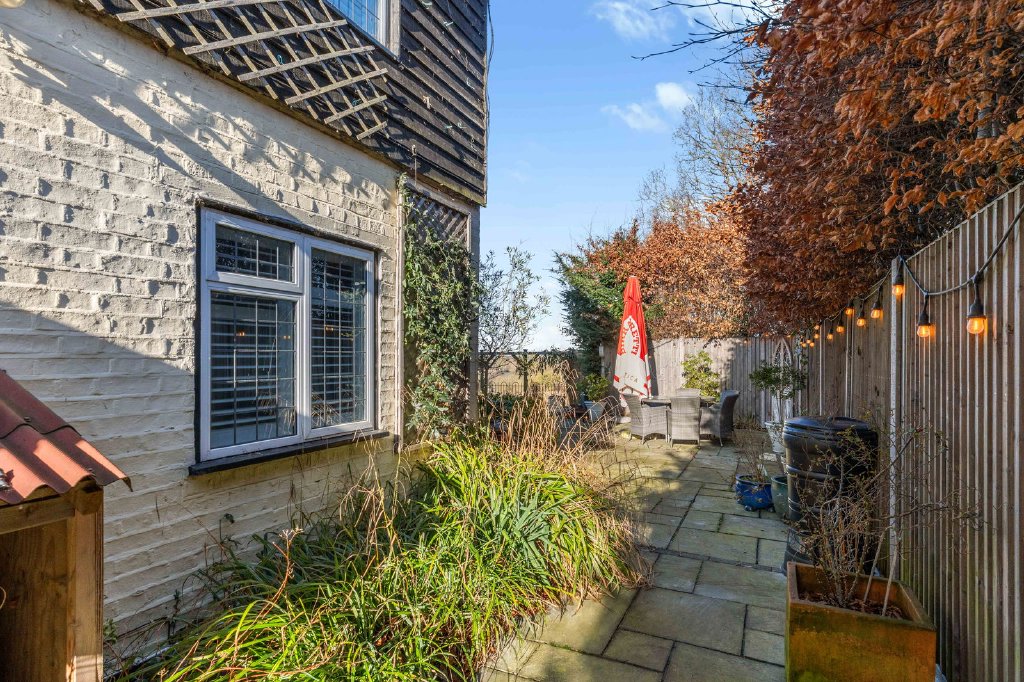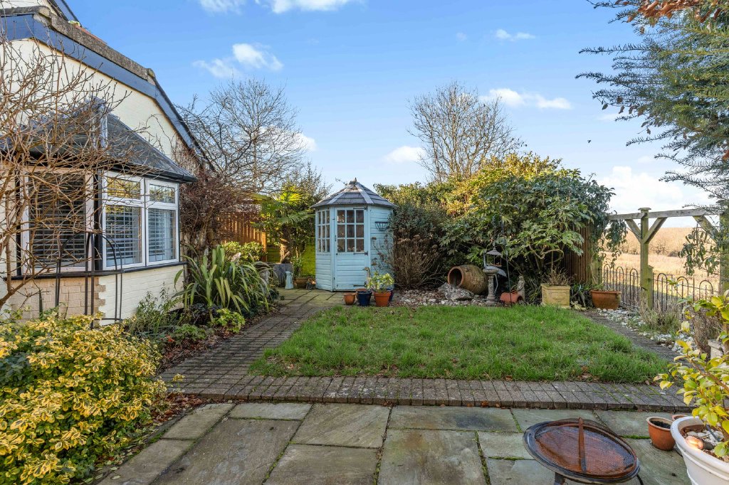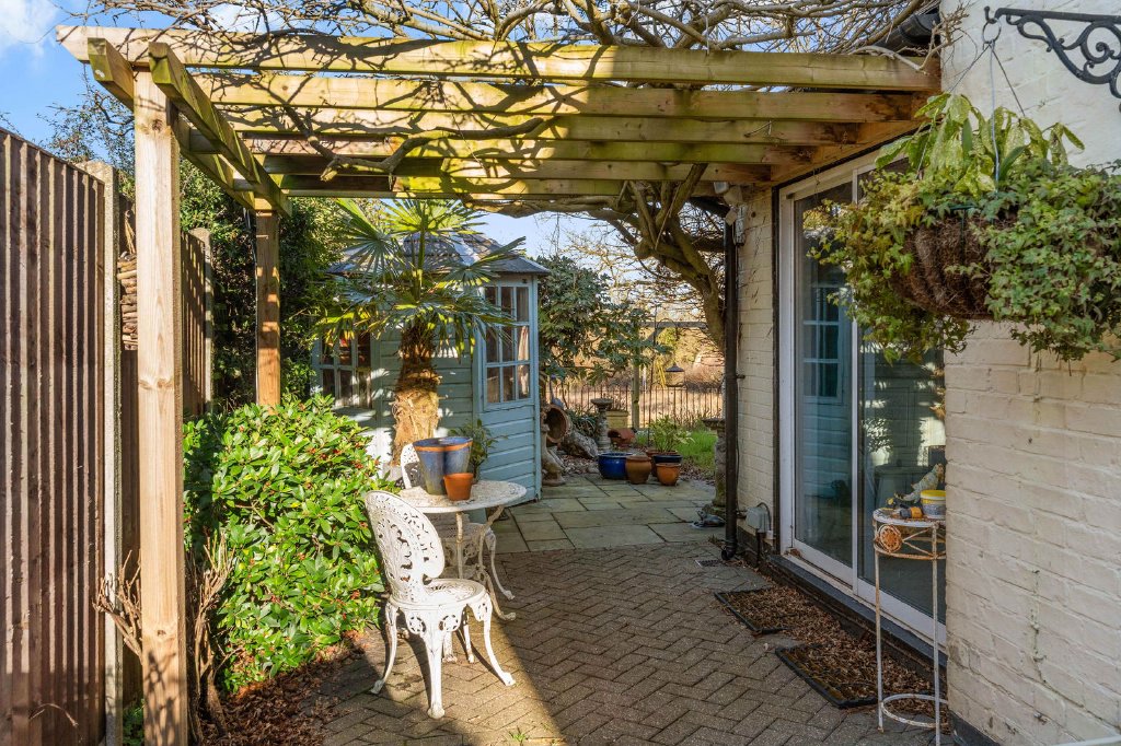 To the front the driveway provides parking for three cars and access to the double garage. The gardens wrap around the house on three sides and are easily maintained and attractively planted with climbing roses, wisteria and clematis. Mainly hard landscaped with a small lawned area the garden has a Mediterranean feel to it and is ideal for entertaining where you can enjoy the privacy and the views over countryside. There is a pergola and a small summer house and the oil storage tank and oil fired boiler can be found tucked away to the front of the house.