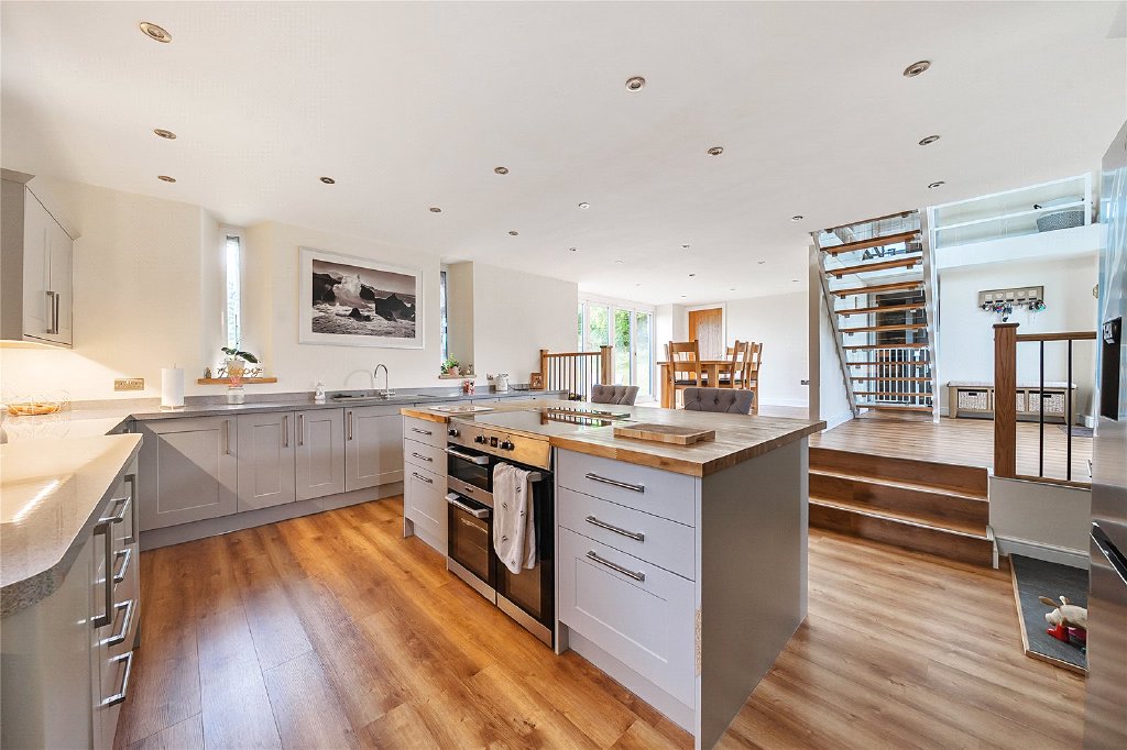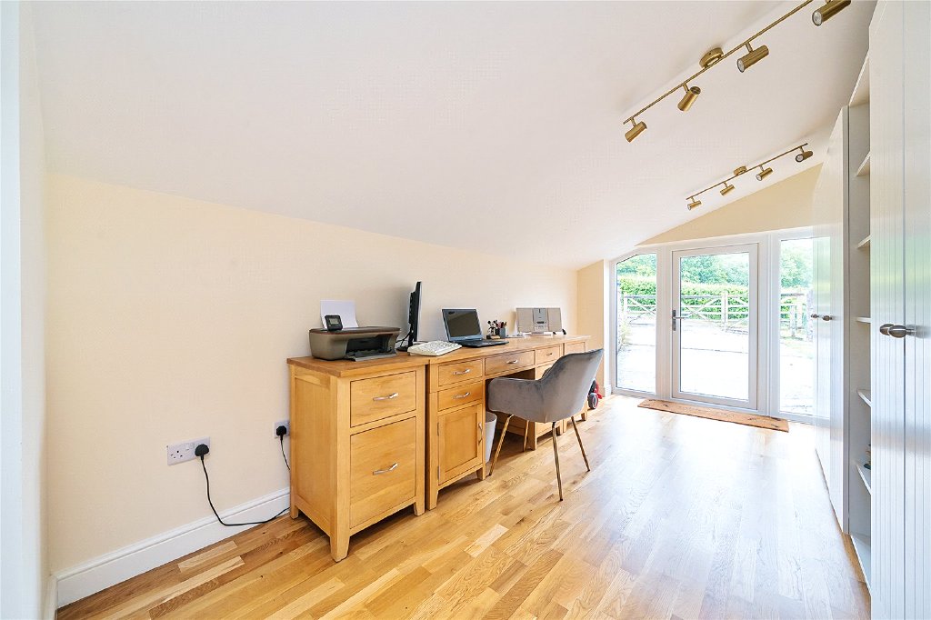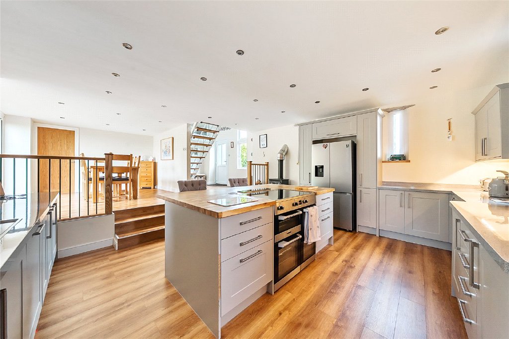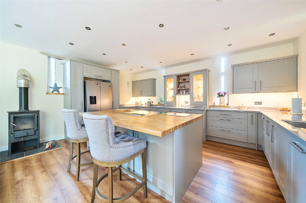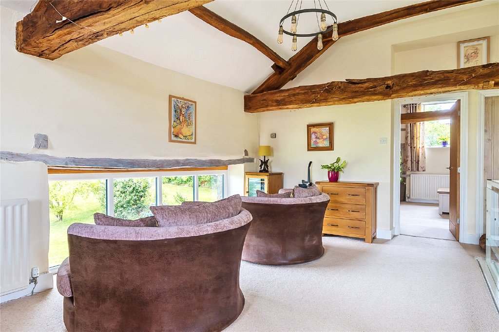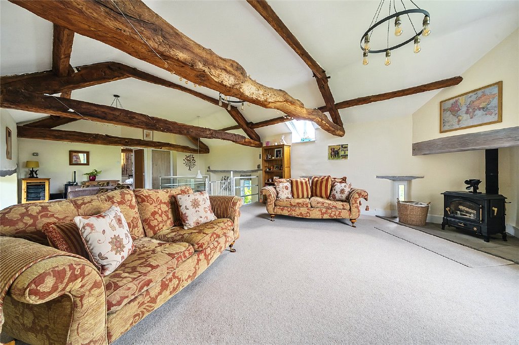 A beautifully presented barn conversion set in around an acre of gardens in a peaceful rural setting. Offering four bedrooms, a vaulted first-floor living room with stunning views, and a stylish kitchen with central island and dining area opening onto a sunny terrace. Additional features include a home office, utility room, and a charming timber-framed summer house—ideal for work or entertaining. Combining rustic charm with modern comfort, this is an ideal country retreat or spacious family home.