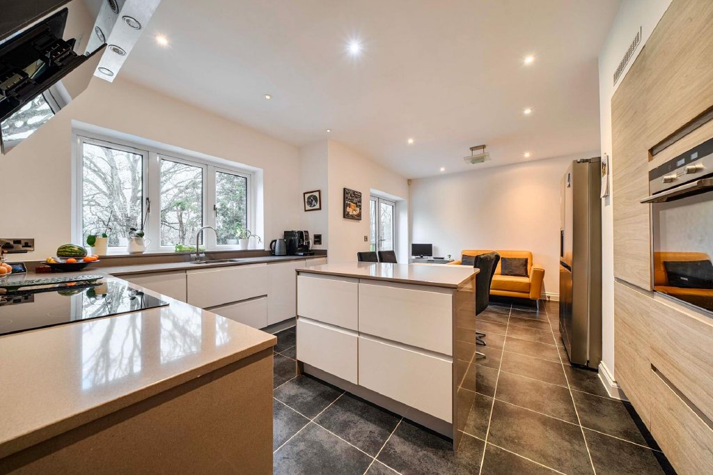 - Spacious kitchen/dining/family room forming the heart of the home, with high specification fittings, integrated appliances, and direct access to the garden