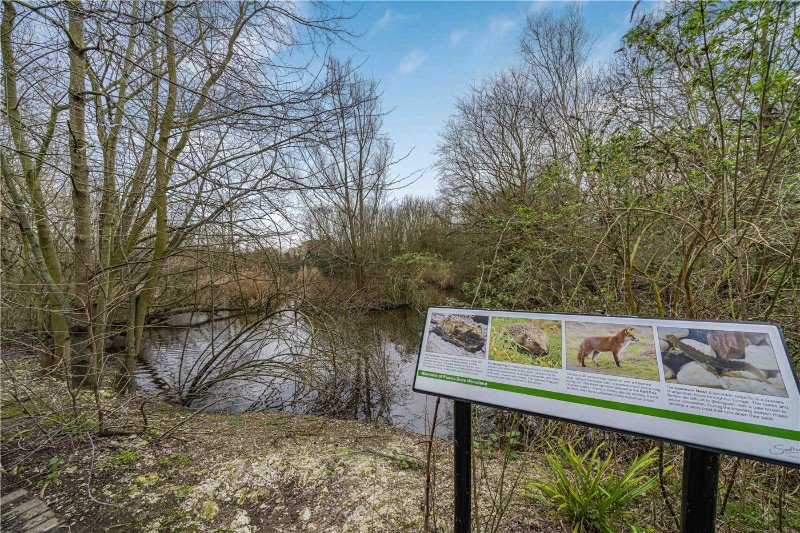 Direct private gated access from the garden leads onto 5.2 acres of woodland and an ecological park. Russia Dock Woodland features a series of water channels and ponds, offering a haven for wildlife, including herons, kingfishers, dragonflies and bees. The woodland includes a games area, children’s play area, picnic spot and designated routes for cyclists and pedestrians, with illuminated paths at night.