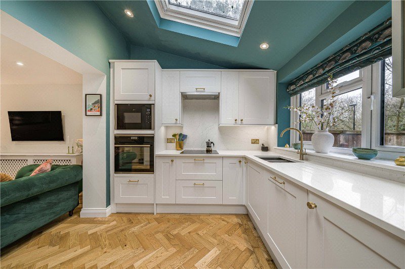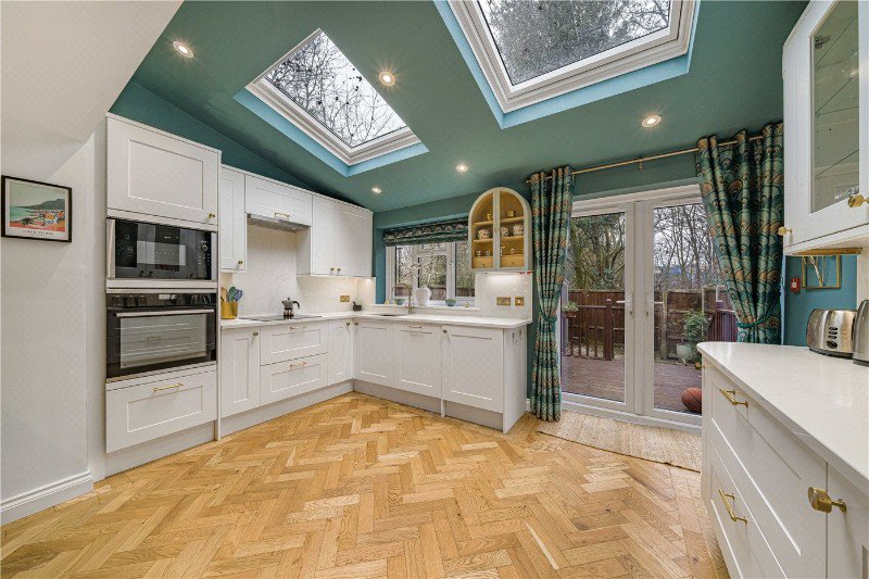 Natural light is plentiful, thanks to Velux windows in the kitchen, second floor bathroom and on the top landing. The garden benefits from decked and paved areas, lighting, outdoor electrical sockets, a Keter shed and tap.