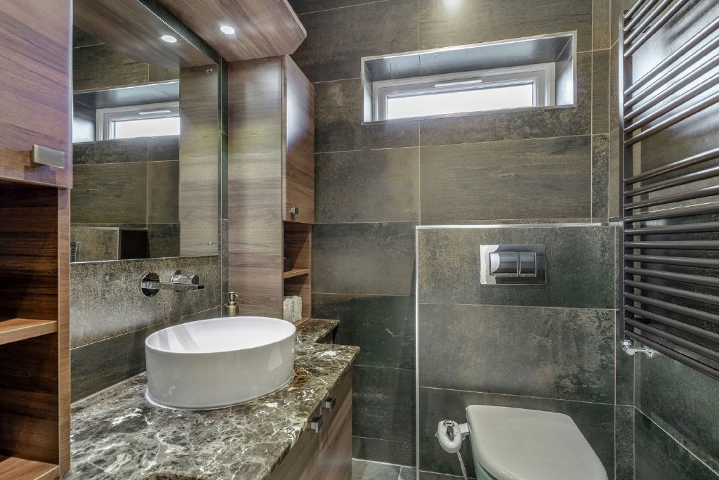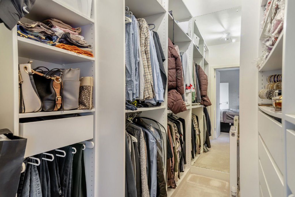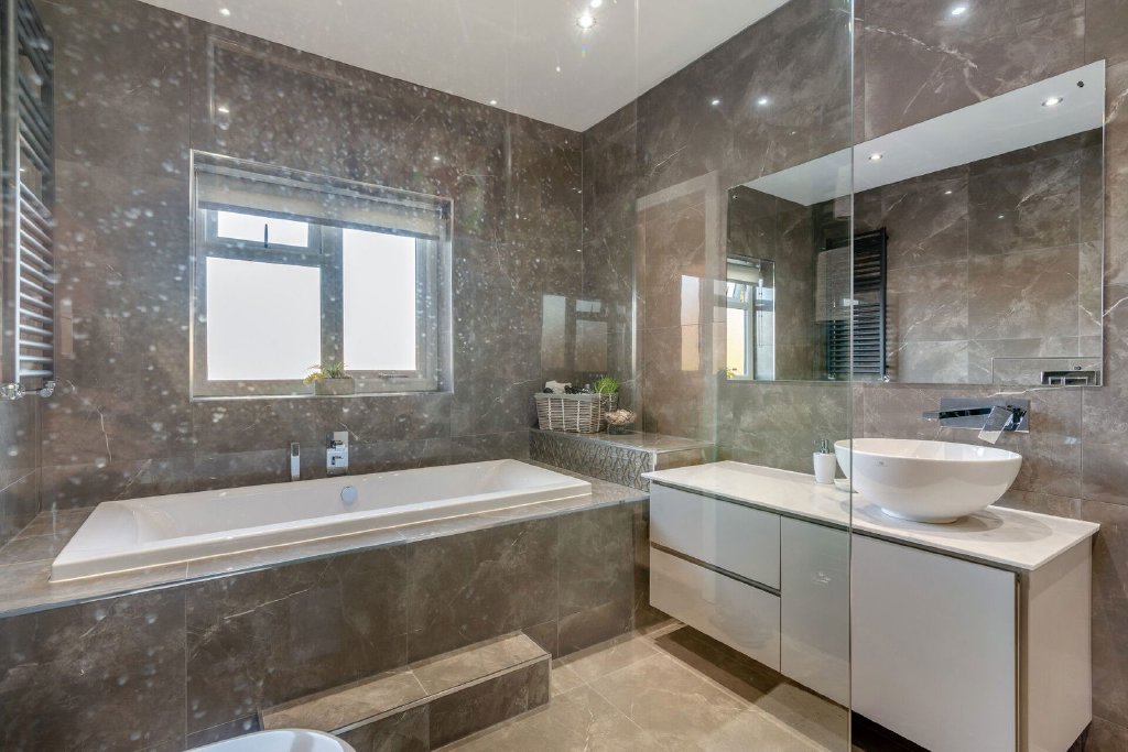 The second bedroom suite is positioned to the rear aspect of the home, offers double accommodation, has a window, a walk through dressing room / wardrobe and en-suite facilities comprising a wet room style shower, a wall hung W.C and a wash hand basin that sits on a marble base with vanity unit beneath; the room having complementary tiling to the walls and floor, a heated towel radiator and a frosted window.