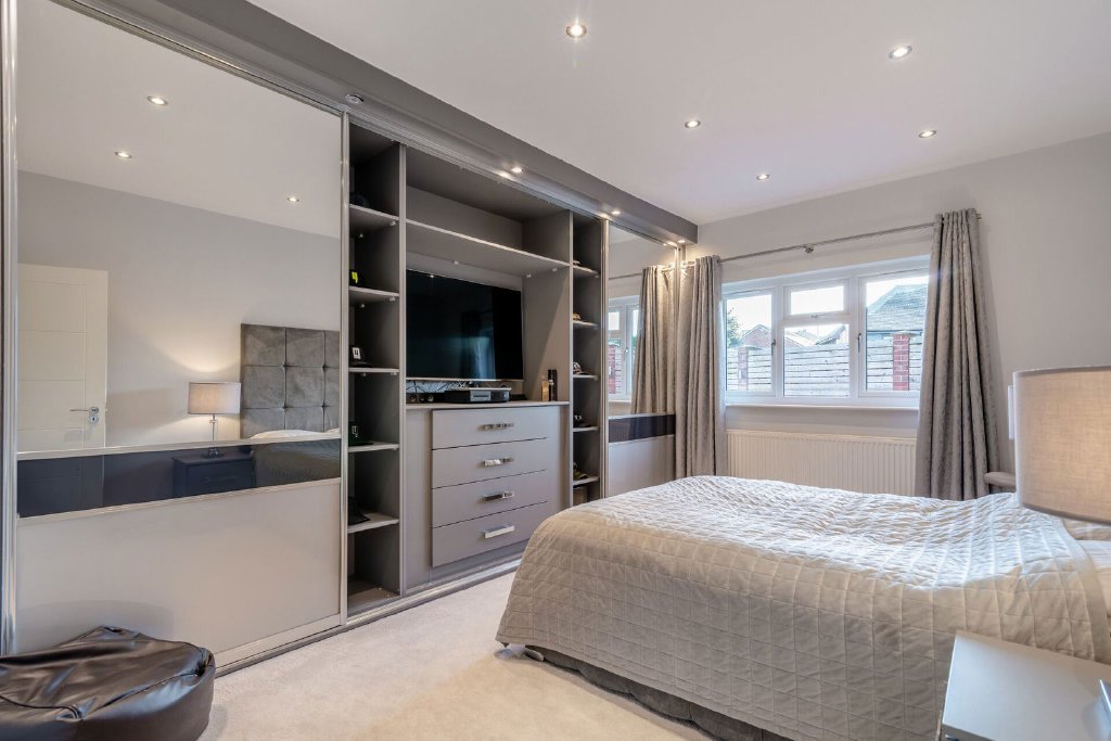 There are two additional double rooms both positioned to the rear aspect of the home, each offering generous accommodation, one with sliding doors opening directly onto a garden terrace, the remaining bedroom having fitted wardrobes to the expense of one wall with mirror fronted sliding doors.