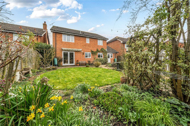 The rear garden which has been thoughtfully designed has a large terrace area, shaped lawn, rose arches and is well stocked with flowers and shrubs throughout the year. The raised bed is brimming with snowdrops and daffodils and there is a useful greenhouse with power. The gate at the rear provides easy access to the village green and primary school.