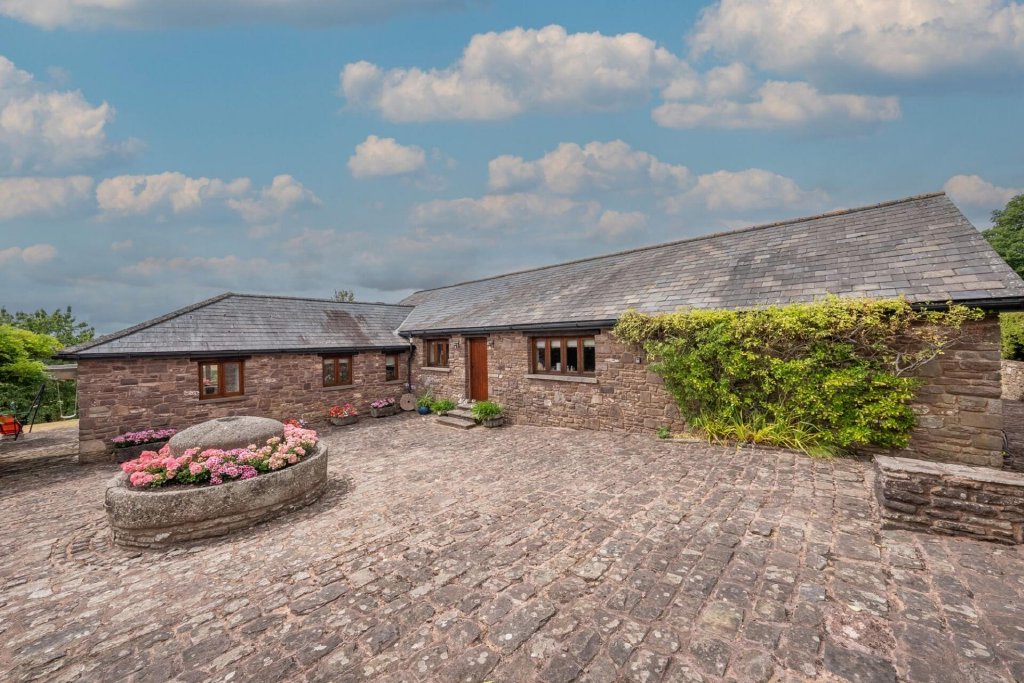 Cross Farm enjoys a commanding position amidst the gently undulating countryside of rural Monmouthshire, offering both privacy and breathtaking views. Approached via a private driveway, the property immediately impresses with its sense of arrival, flanked by mature hedgerows and bordered by open fields, the setting is tranquil, timeless, and beautifully secluded.
