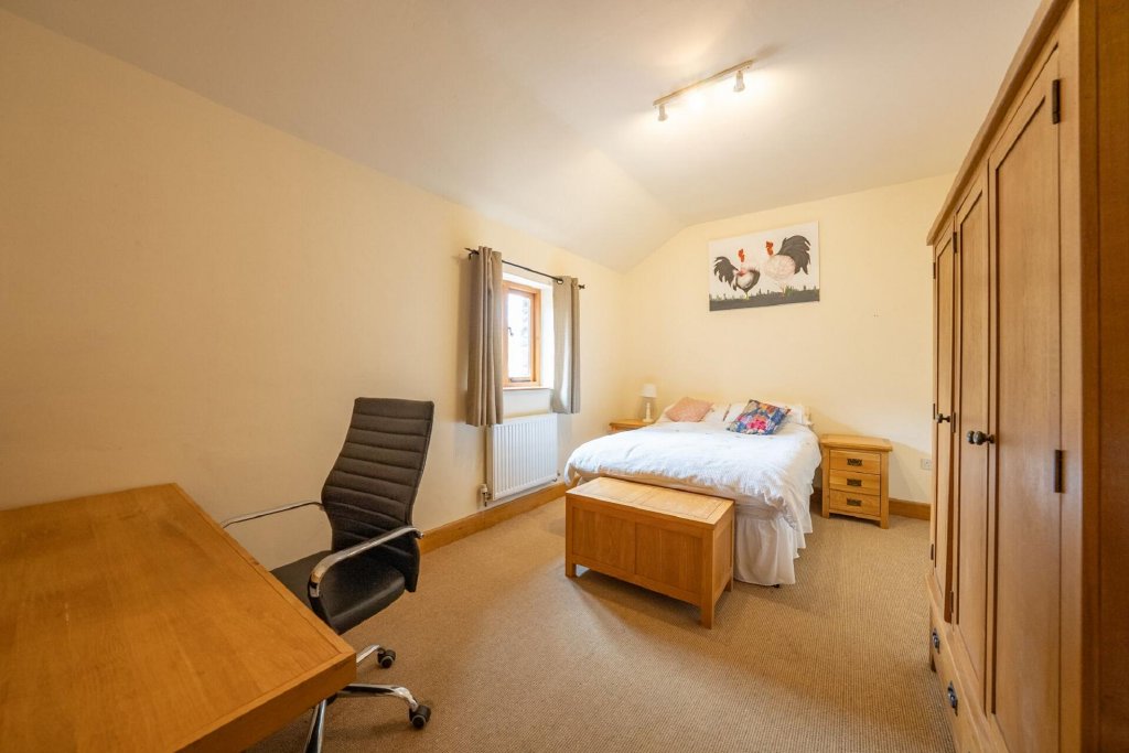 Situated away from the main residence, the self-contained two-bedroom annexe offers a beautifully appointed and versatile living space. Designed with an open-plan layout, it features a charming open fire and enjoys picturesque views across the surrounding landscape.
