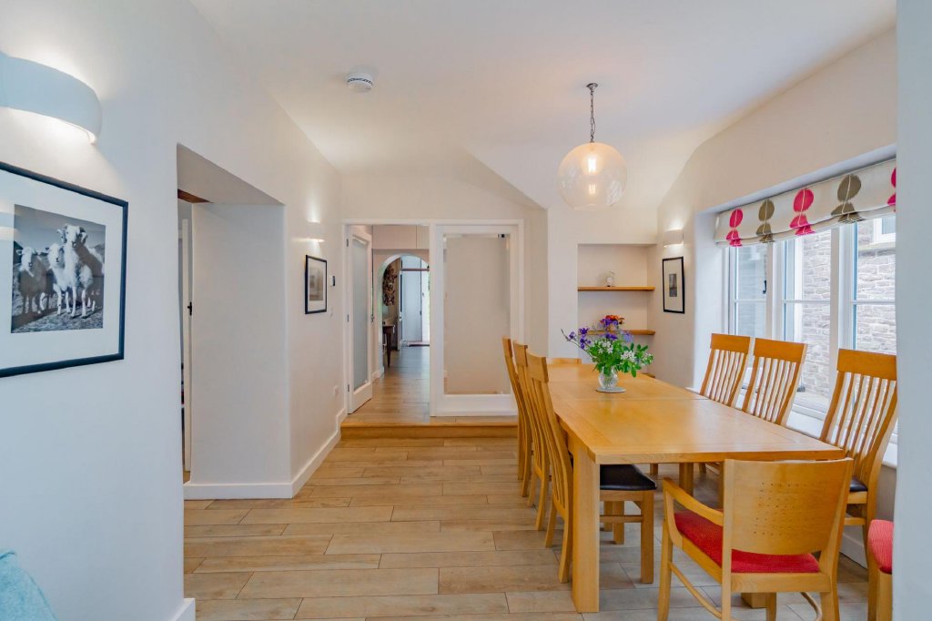Llanishen House has two dining rooms; one situated towards one end of the kitchen is perfect for more intimate family occasions or morning coffee, with a large window looking out over the courtyard beyond and a door leading outside.