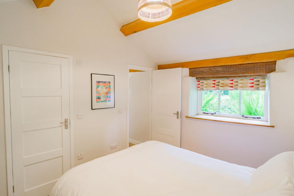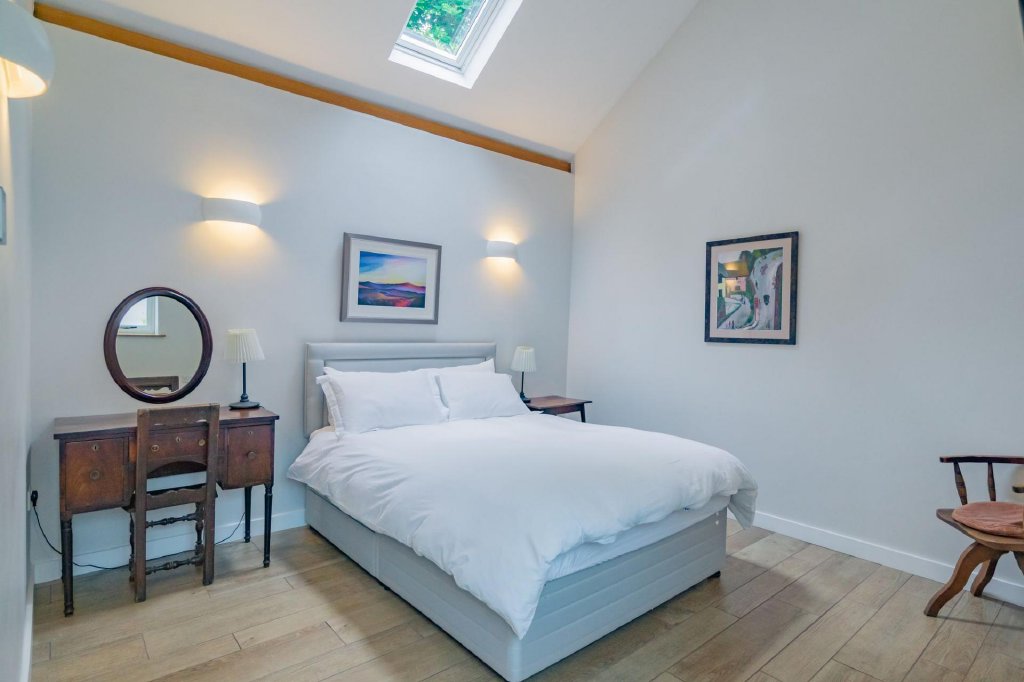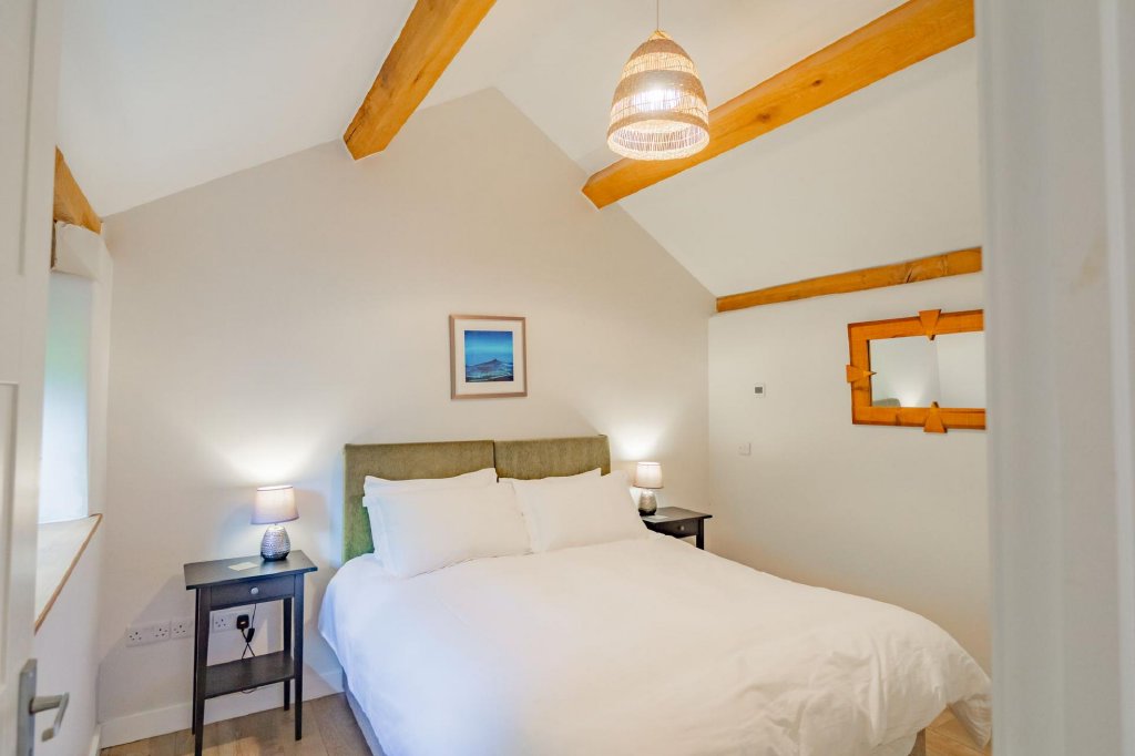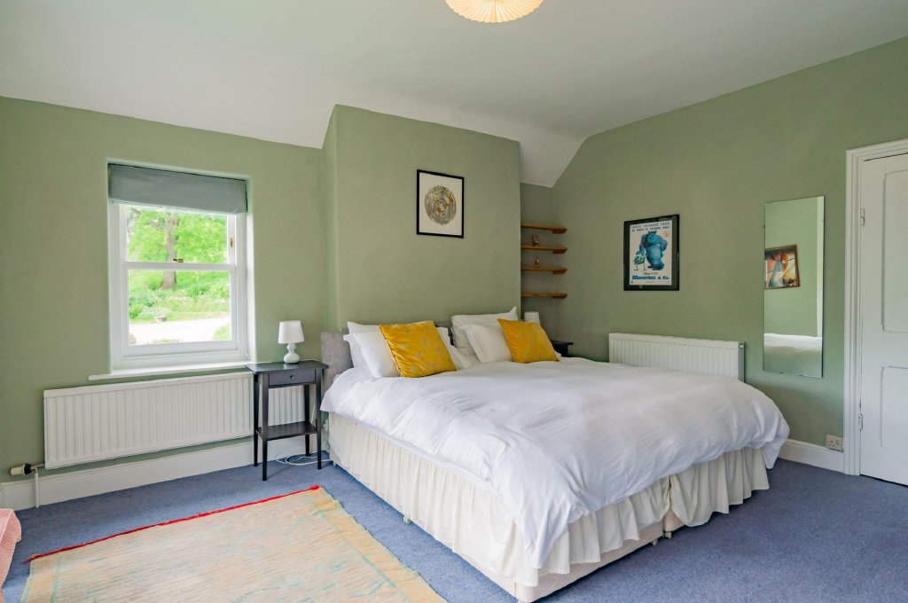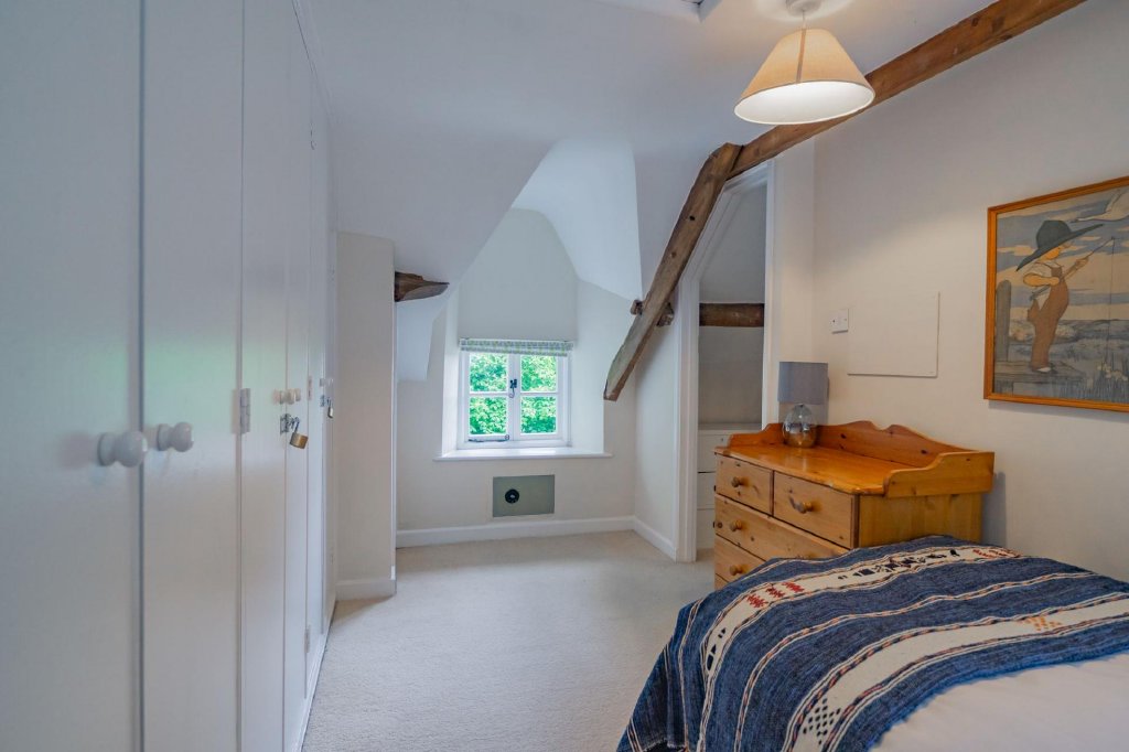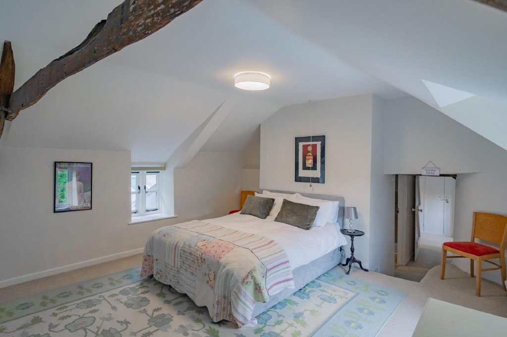 The principal bedroom is generously sized, with exposed beams, fitted wardrobes and an en suite with a shower and double sinks. There's also a dressing room large enough to accommodate a single bed. All of the rooms on the west-facing side of the house enjoy views of the Black Mountains.