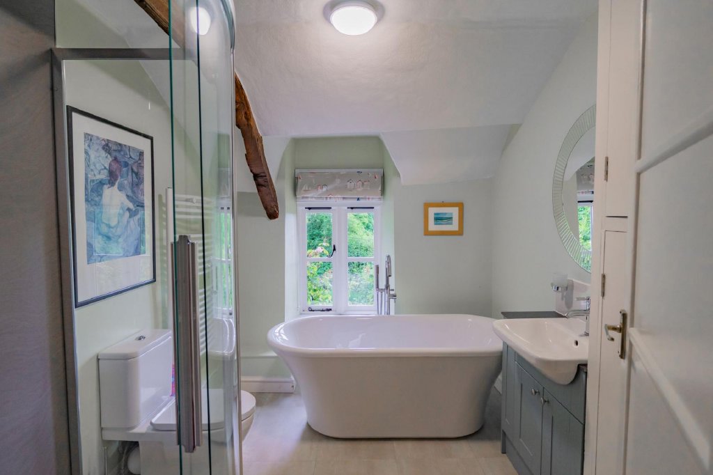 The first floor has three generous double bedrooms, all with sash windows framing delightful views over the gardens and the countryside beyond, and a family bathroom with an enticing standalone bath and a shower.