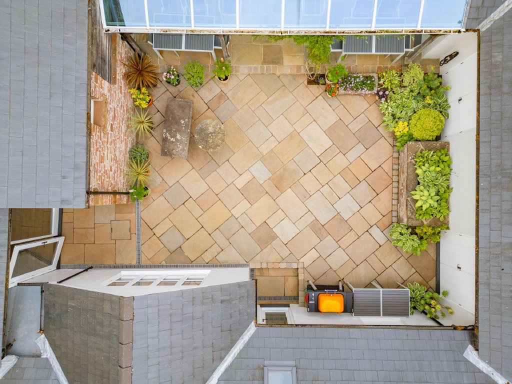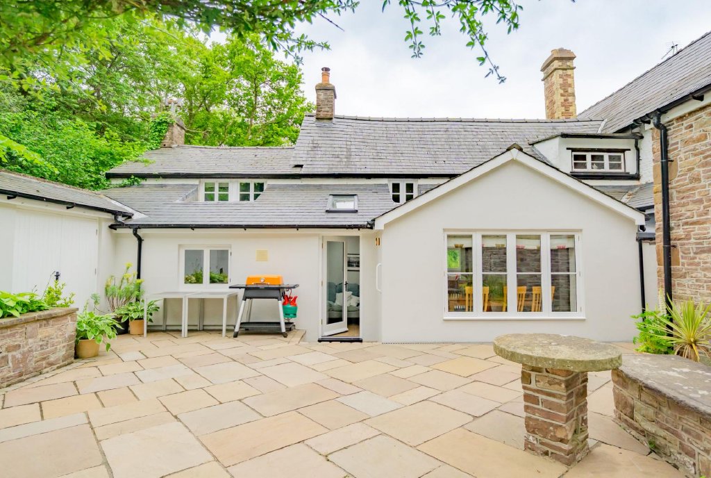 Llanishen House is surrounded by mature gardens developed by the current owners over the space of 25 years, with beautiful mixed borders and large lawns. The two parts of the property are connected by a Mediterranean-style courtyard that's perfect for outdoor living and entertaining, with a glass-roofed canopy at one end to provide shade and shelter.