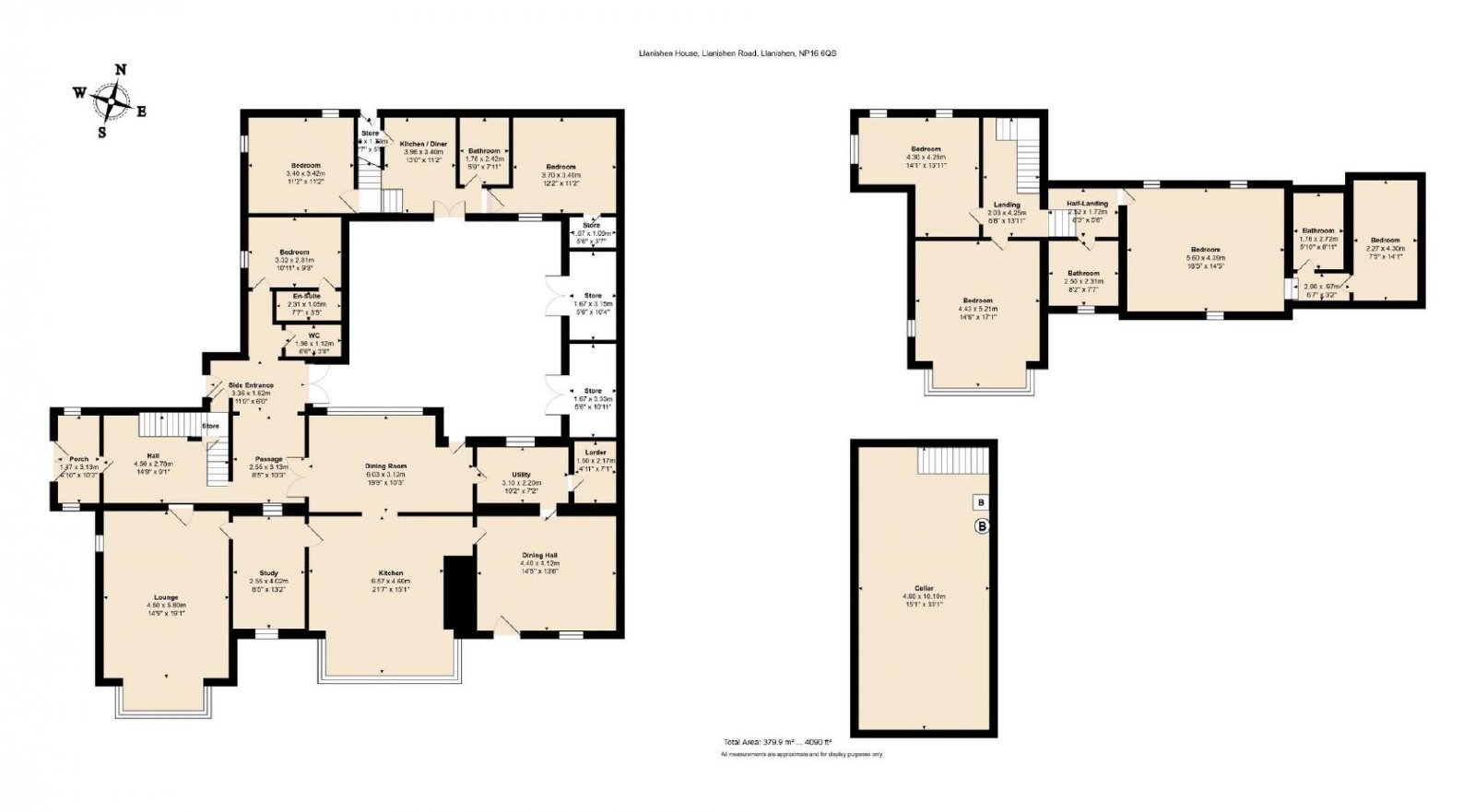 Llanishen House is served by a sweeping driveway, which it shares with a neighbouring property, and winds through what feels like a magical forest, setting the tone for the tranquillity and elegance that awaits. There's parking for up to six vehicles. To the far side of the driveway is small paddock with a stable block with two stables and a tack room/hay store.