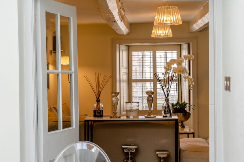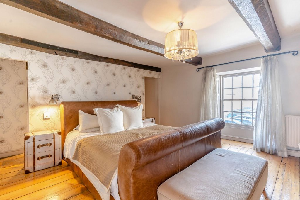 The home is adorned with original fireplaces, oak timber floors, and custom-made shutters on the front windows. A bespoke kitchen, a master suite reminiscent of a luxury hotel, and exquisite joinery by Quails of Usk further enhance its distinctive appeal.