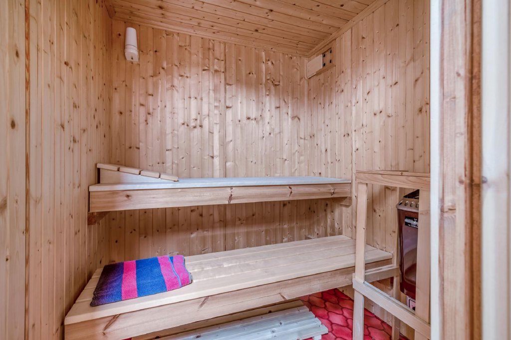 An iron and wood spiral staircase in the corner of the snug leads to large room that’s currently used as a games area but which could be turned into a fifth bedroom. Close by is a large room with a sauna and jacuzzi bath and there’s plenty of storage space in the eaves.