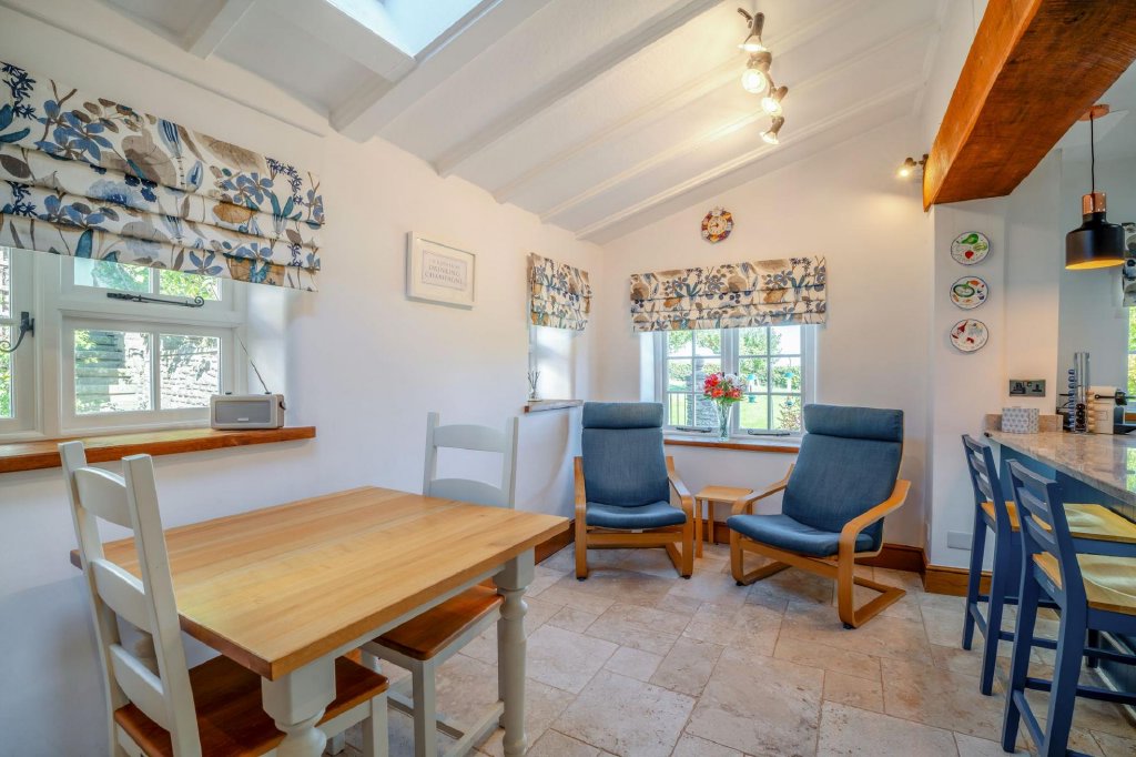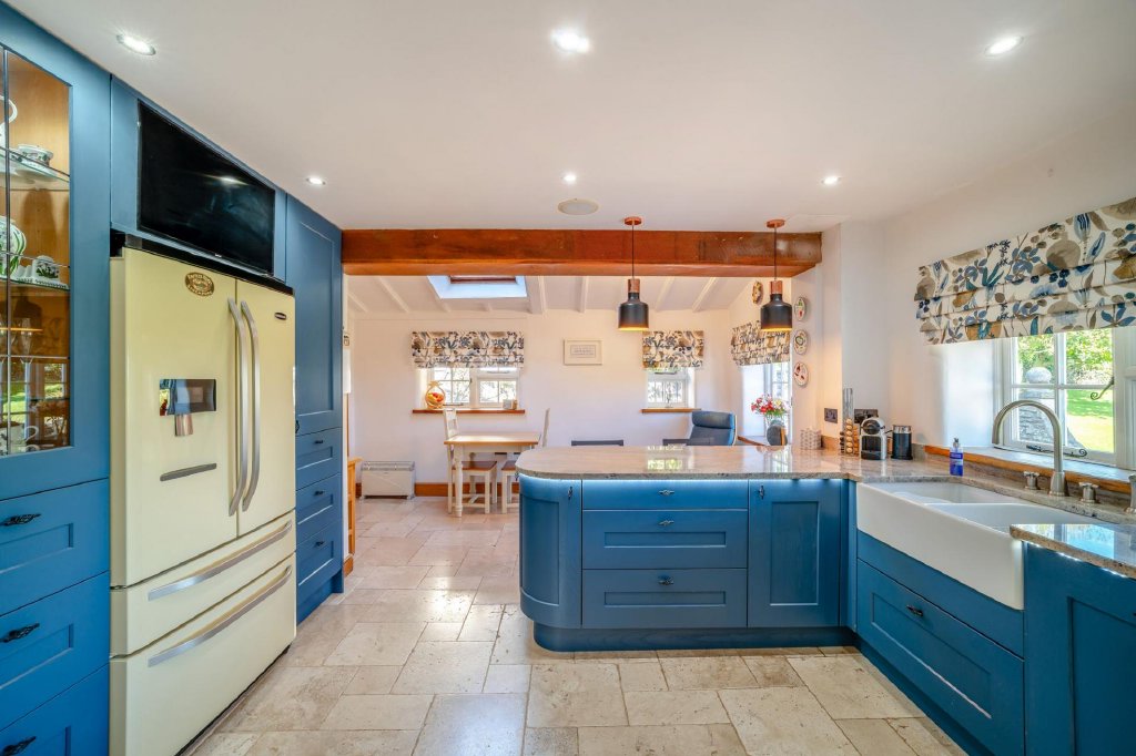 It's very much a house for all seasons, the owners explain. In winter, the sitting room with its wood fire is a cosy retreat, while the Aga keeps the kitchen warm and inviting. In spring and autumn, the conservatory is ideal for relaxing and watching the garden come to life. And in summer, the bifold doors open the house to the outdoors the patio, fishpond and pergola are wonderful spots for relaxing, entertaining, or simply enjoying the sunset with a G&T.