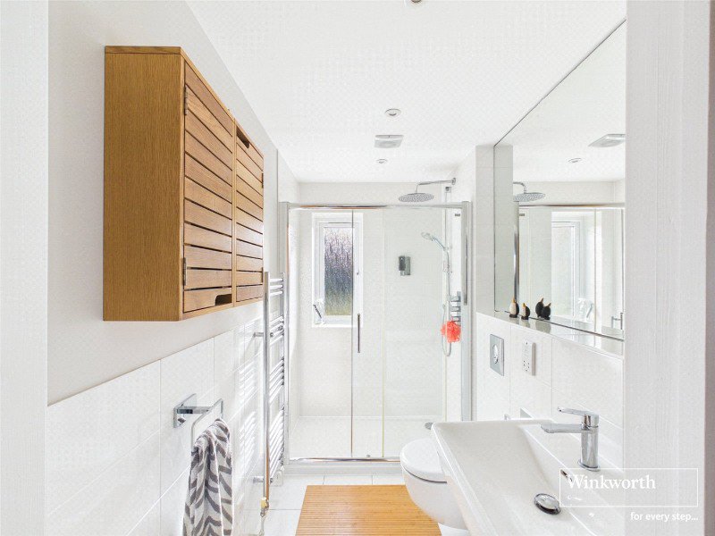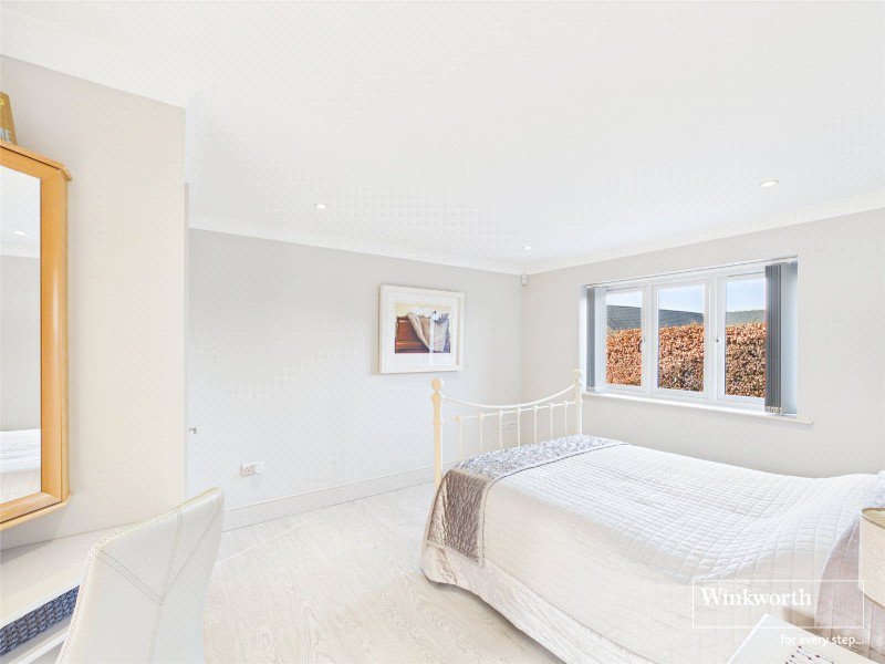 To the first floor are two additional generous double bedrooms, each benefiting from walk-in wardrobes, served by a well-appointed family bathroom featuring both bath and separate shower.