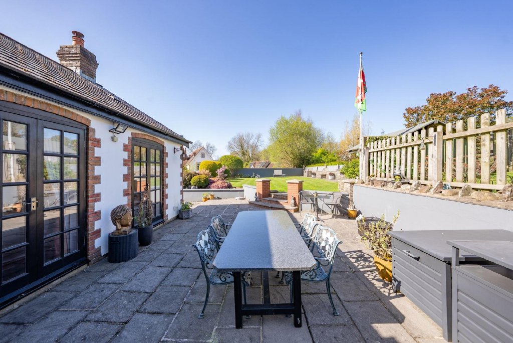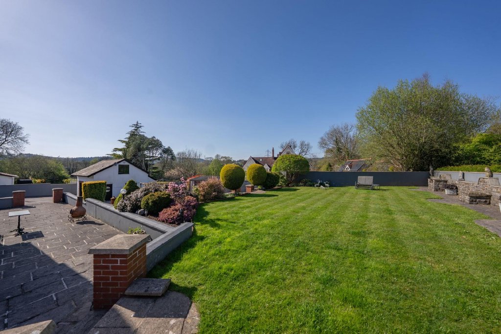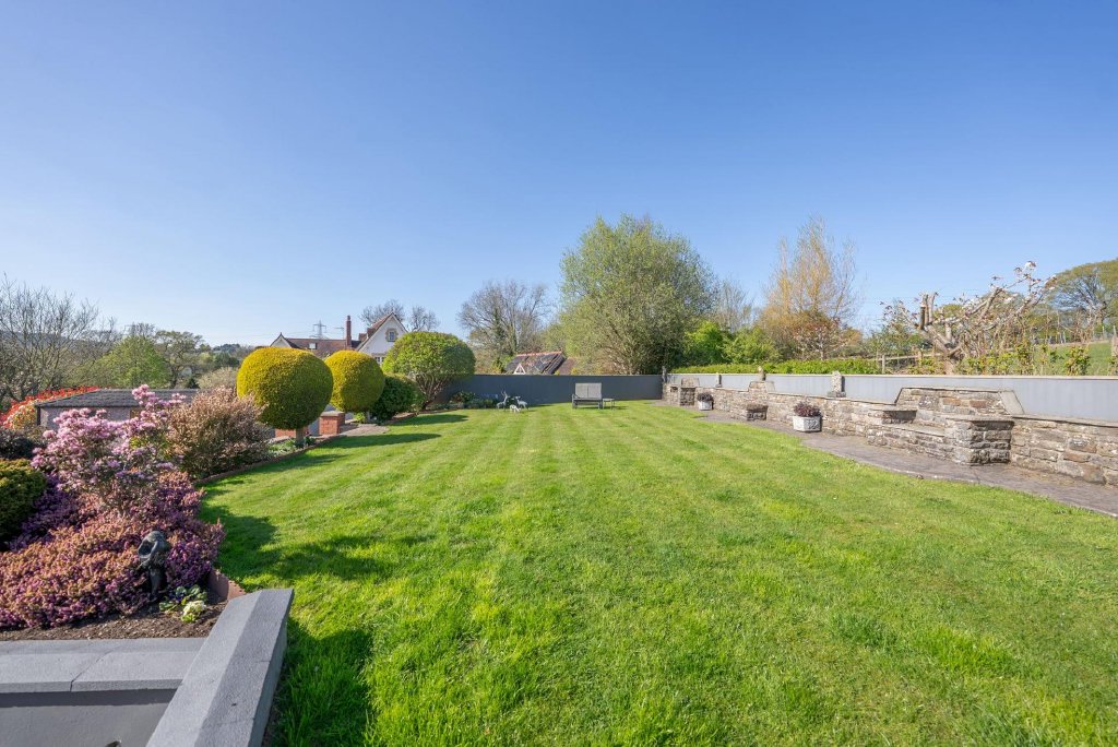 The gardens surrounding the property are beautifully maintained and offer a lovely space for outdoor enjoyment. While not expansive or overly large, the well-proportioned gardens are ideal for a family seeking a manageable space to enjoy. The tiered garden features a paved terrace at the rear, leading onto a well-kept lawn area, perfect for children to play or to simply unwind.