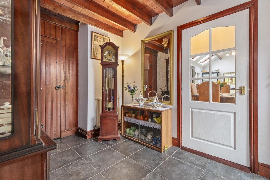 The double garage has been partly converted to offer a room with a W.C., ideal for a home office, gym, or guest room. The remaining section of the garage serves as a storage space, but with its double-storey design, it holds excellent potential for further conversion into an annexe, holiday cottage, or additional living space, allowing for flexible use depending on your needs.