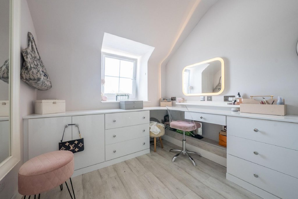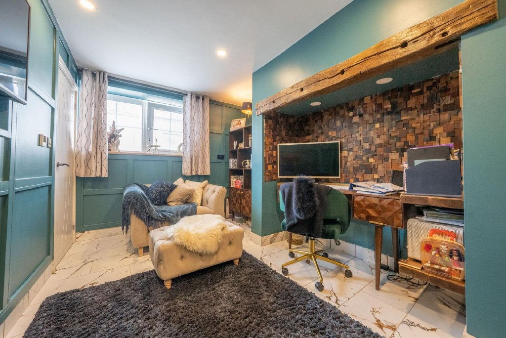 The ground floor also provides excellent versatility and functionality, including a dedicated office, a gym, utility room, cloakroom, and a ground floor bedroom with en suite, currently styled as a second workspace.
