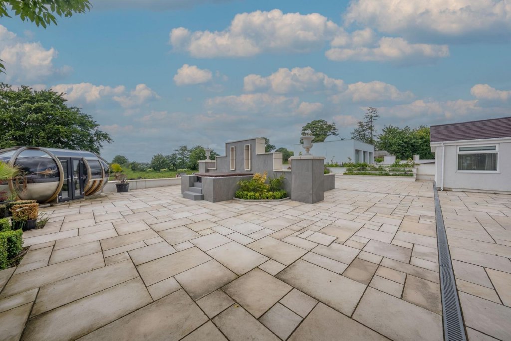 The triple bay garage offers ample storage or could be transformed into further accommodation or leisure space (subject to planning). The expansive, low-maintenance garden includes thoughtfully designed patios, water features, and raised seating areas-ideal for outdoor entertaining and al fresco dining.