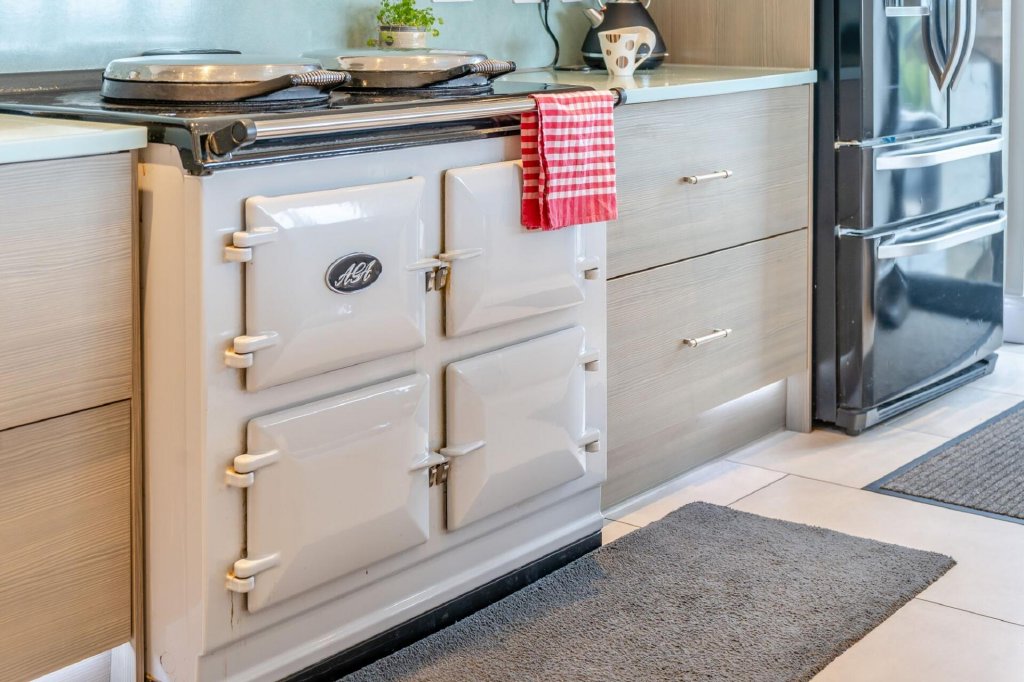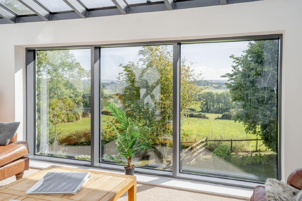 Their improvements included the inspired addition of a spacious, modern, open plan kitchen/breakfast room, with corner-set bifold doors bathing the room with natural light and taking full advantage of the views. Positioned at the rear of the house, straight off the main entrance hallway, the sleek, contemporary-style fitted kitchen includes a comprehensive range of integrated appliances, an Aga and an American-style upright fridge freezer.