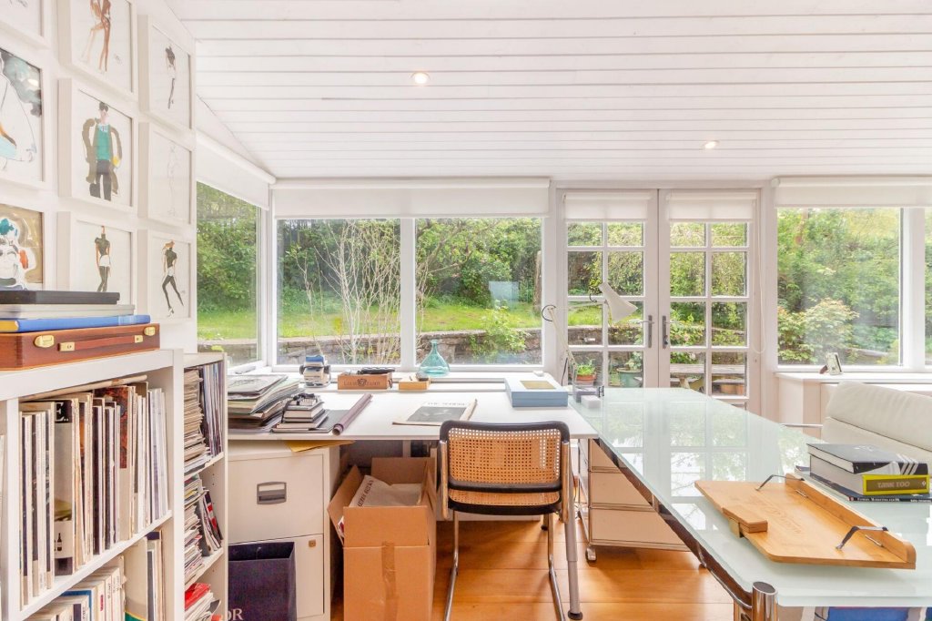 The garden room lies at the opposite end of the house to the sunroom and has a pair of French doors leading outside.