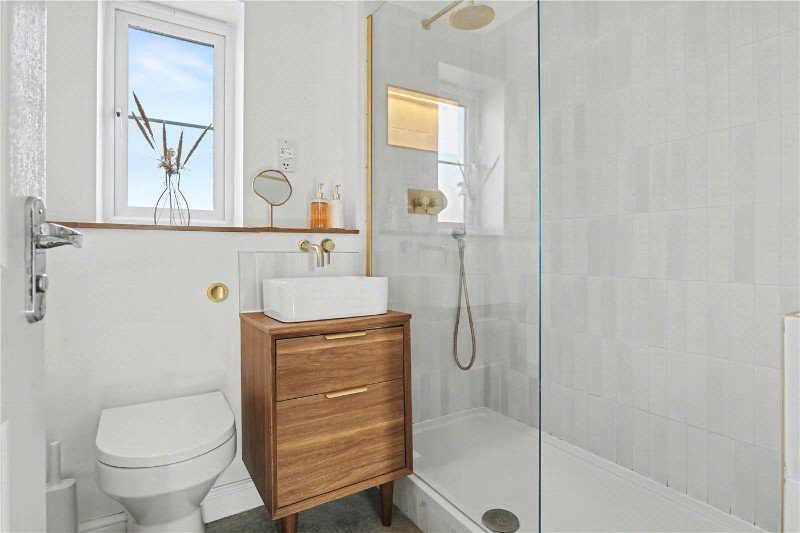 From the moment you step inside, there’s an immediate sense of warmth and welcome. The kitchen has been thoughtfully designed with a sleek, contemporary finish and plenty of space for dining, making it just as suited to relaxed breakfasts as it is to hosting friends for supper. To the rear, the reception room provides a bright and sociable living space, with bi-fold doors opening directly onto the garden, effortlessly blurring the line between indoors and out during the warmer months. A handy cloakroom and a generous storage cupboard add to the practicality of the ground floor which is accomodated with underfloor heating throughout.