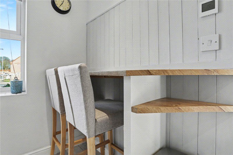 Upstairs, both bedrooms are comfortable doubles, offering flexibility whether you need guest space, a home office or room to grow. The principal bedroom benefits from built-in wardrobes, while the immaculate family bathroom, finished in a timeless style, completes the accommodation.