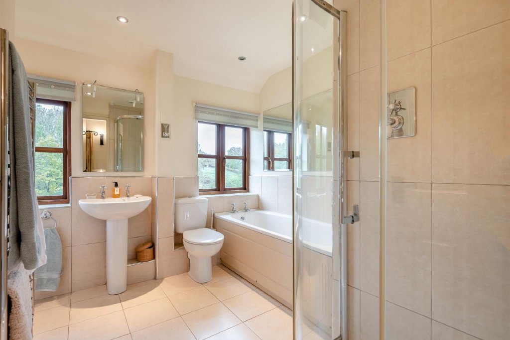 Upstairs, the first floor holds a fantastic surprise. Alongside two exquisite en-suite bedrooms, stone steps lead up to what would have been the sitting room of the original cottage. This versatile space, currently still a sitting room with fireplace and wood-burning stove, could be transformed into a luxurious bedroom, a self-contained annexe or a holiday let (subject to any necessary consents), a large home office, gym or yoga room, the possibilities are endless.
