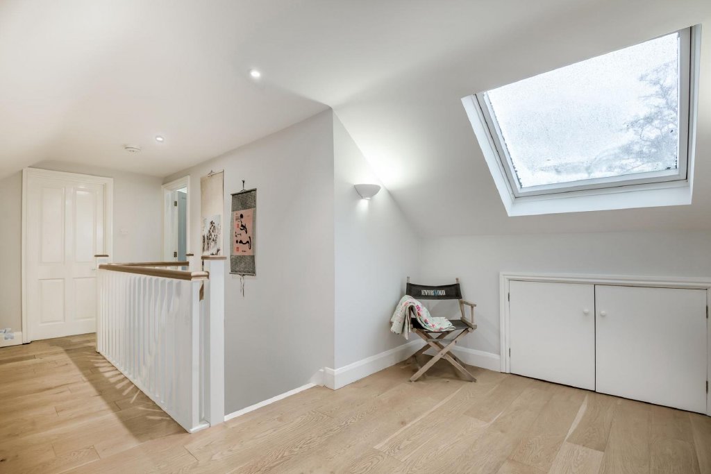 Turning right at the top of the stairs you head towards the wonderful mezzanine area that overlooks the living room, ideal as a cosy reading space, and benefitting from additional built in storage.