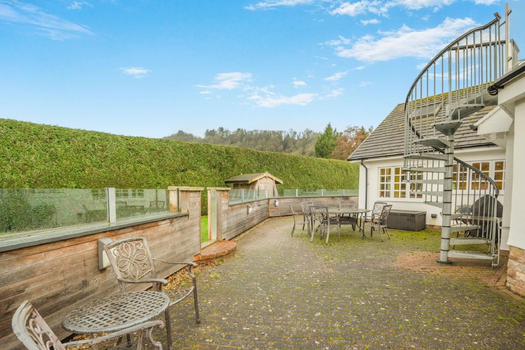 To the far corner of the garden is a raised decking area, offering a wonderful space to sit and enjoy the beautiful views across the river towards the Doward and surrounding countryside. The decking has built-in seating and plenty of space for garden furniture, and a large custom-made, built-in gas barbecue comprising five burners that can also be used as double oven and rotisserie, as well as a separate grill/teppanyaki with single side gas burner.
