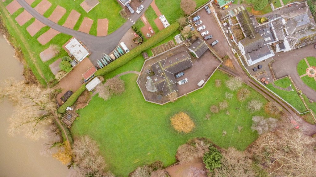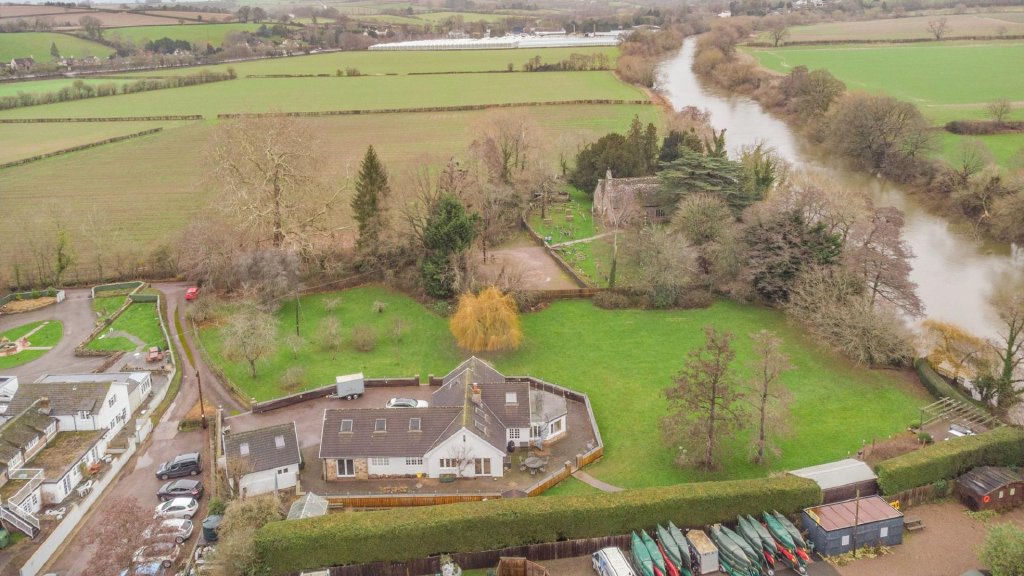 The grounds include a beautiful expanse of lawn, orchards, outbuildings, vegetable plots, a detached garage with studio above and direct access to the River Wye.