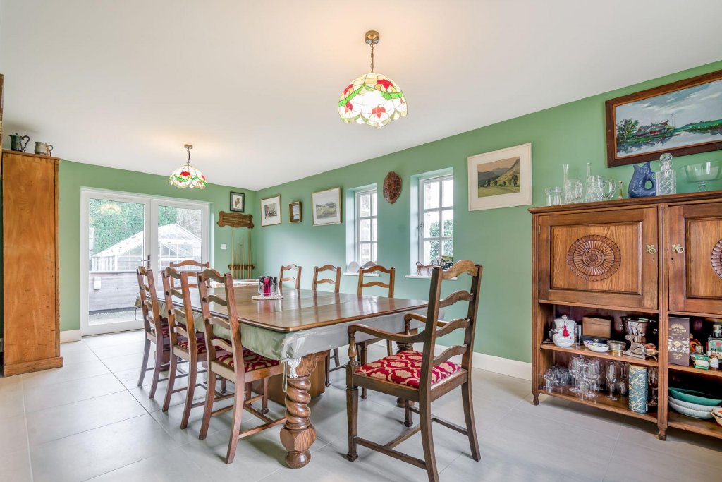 Further down the hallway, you will find three additional rooms, each of which offer potential for bedroom use if required. The furthest and largest of these rooms is currently used as a formal dining room, with double doors leading outside and a storage cupboard to the corner. The other two rooms are used as a reading room and a hobbies/craft room respectively.