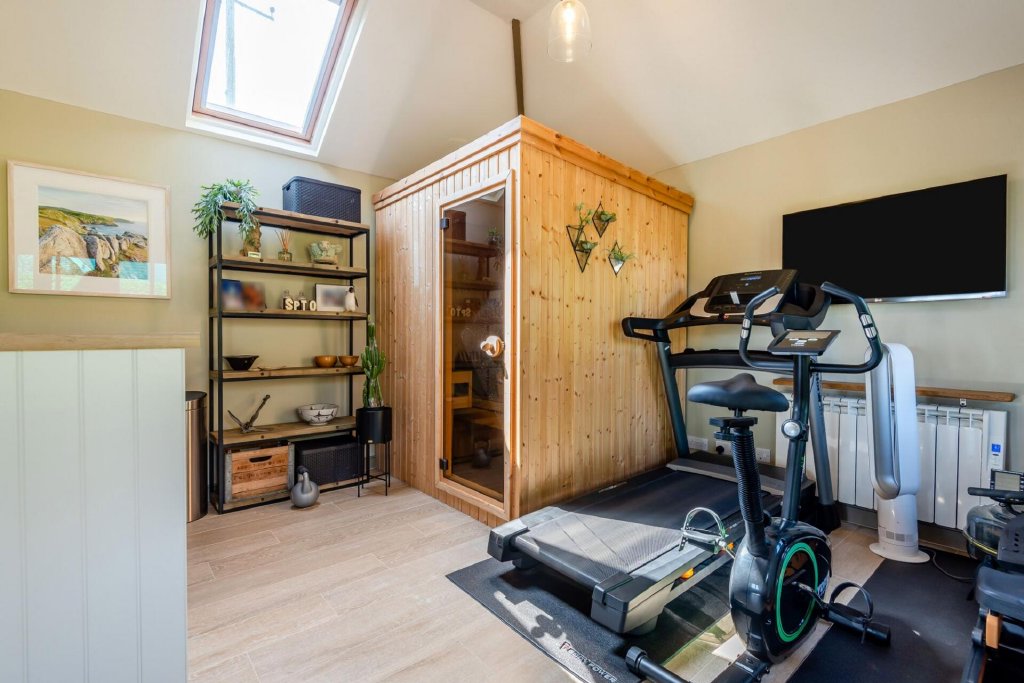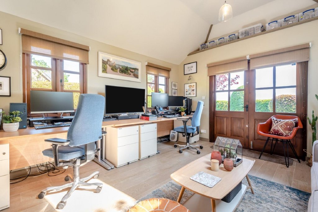 The current owners have created an exceptional detached office suite, designed to emulate the character of the house, which includes a sauna & gym room. This space provides an excellent opportunity for those working from home or in need of a creative studio, offering a quiet and inspiring environment away from the main house.