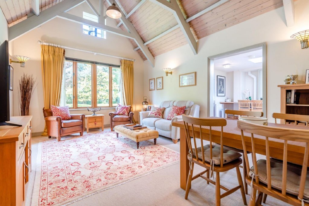 The lounge features a splendid high vaulted ceiling which adds to the sense of space and grandeur. The cottage also features a well-appointed shower room and modern kitchen with countryside views, ensuring comfort and privacy for its occupants.