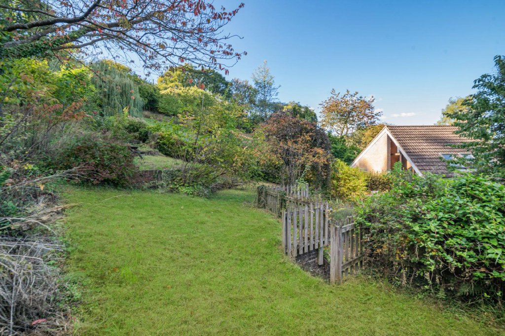 The property enjoys a wonderful tiered garden with potential for further landscaping, and comprising areas of lawn with planted beds and a range of beautiful shrubs and small specimen trees, with a spring fed stream that meanders down through the garden. In addition, there is a sun terrace offering the perfect space to enjoy the tranquil and scenic surroundings.
