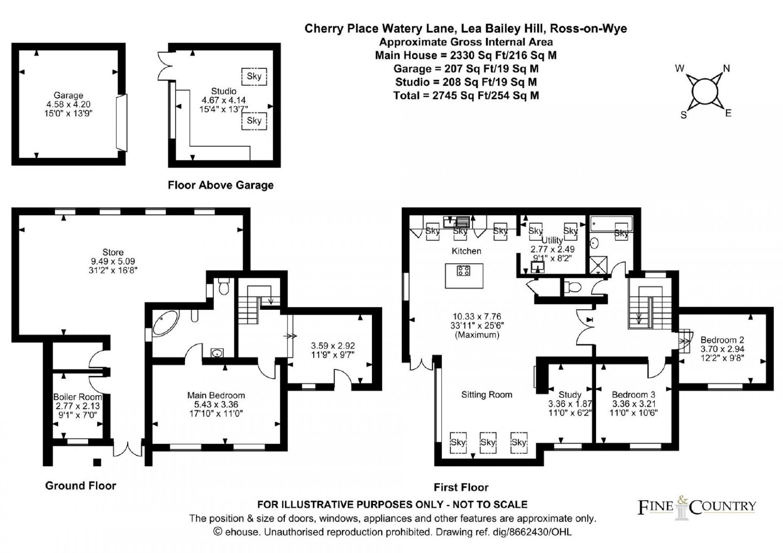 - Gardens, garage, outbuilding, parking