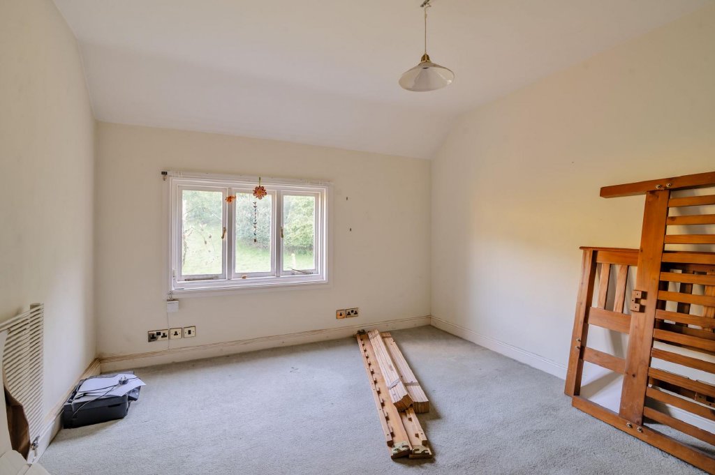 There is parking to the front of the property, as well as a single garage, above which is a fantastic home studio. This offers great potential for conversion into additional accommodation (subject to the relevant planning permission), or as a separate home office away from the main house. This room follows the theme of the new extension with vaulted tongue and groove ceiling giving a ski lodge-style feel, with bedside lamp points and power points installed. French doors and glazed window with views over the garden.