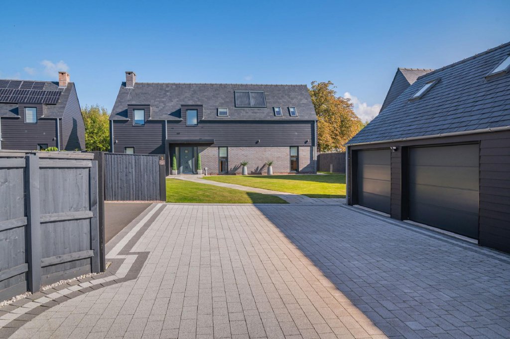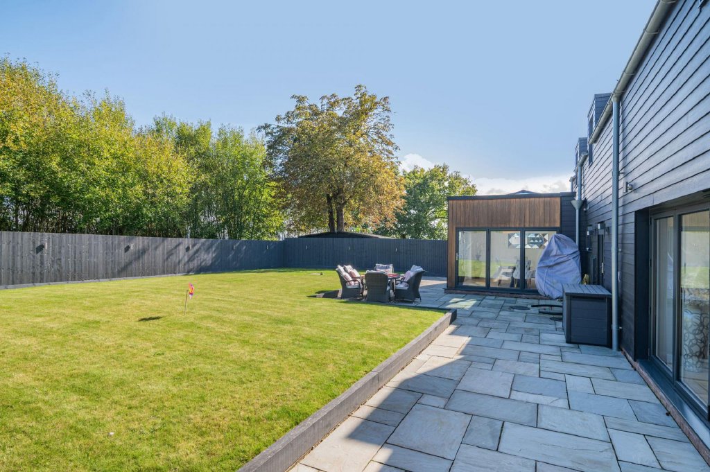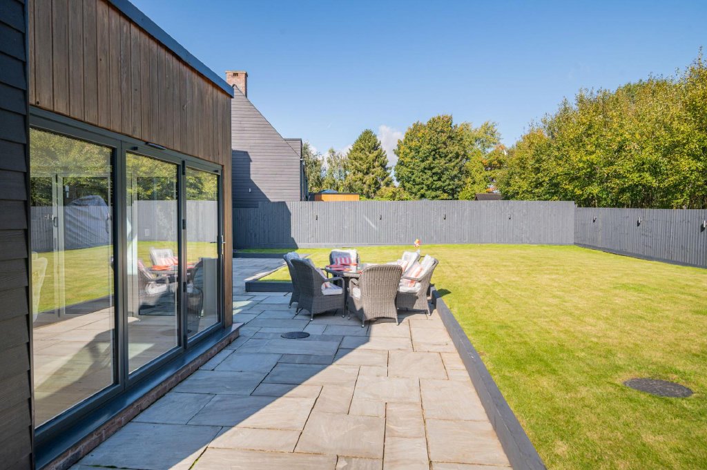 The property enjoys a large expanse of lawn to the rear, with fencing to the boundaries and stylish gates to either side allowing access to the front. To the rear of the property over the far boundary is private woodland allowing for privacy, with a beautiful view over countryside to the southern elevation. Accessible from the kitchen and lounge is a good size paved patio area, ideal for entertaining and barbeques in the summer months.