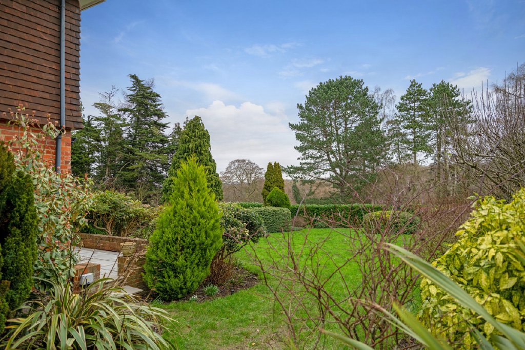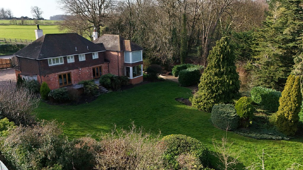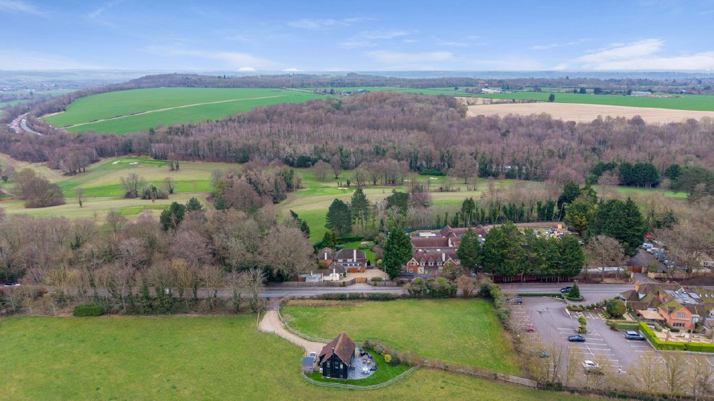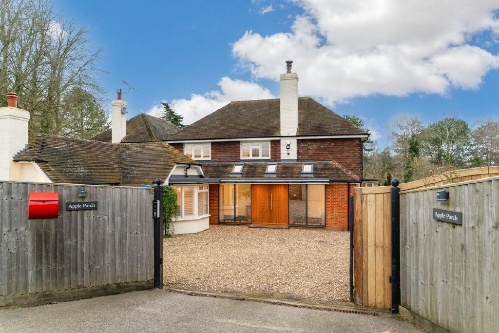Set back from the road behind electric gates, Apple Porch is an exceptional detached family home extending to approximately 3,431 sq ft, positioned within just under an acre of beautifully landscaped grounds with a private woodland and far-reaching views across Temple Golf Club and open countryside beyond.