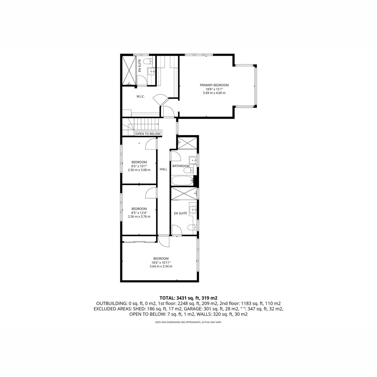 - Four bedrooms, three bathrooms