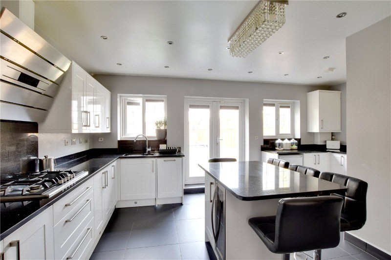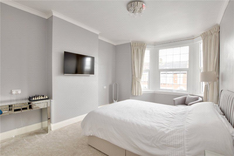 The accommodation briefly comprises; entrance hall with under stairs storage, a large 14’9 x 14’0 front reception room with bay window and fireplace, second large 12’10 x 11’0 reception room, a huge and stunning, kitchen breakfast room with luxury modern fitted kitchen, integrated appliances, and breakfast bar island. There is a separate utility room with a downstairs WC. Upstairs to the first floor are three bedrooms, two of which large doubles, and a gorgeous luxury family bathroom with Italian marble surround. The top floor offers a large fourth double bedroom with juliette balcony to the rear, a modern shower room and a fifth bedroom with restricted head height which currently serves as an office. To the rear of the property is a 50ft landscaped low maintenance garden with large terrace, artificial lawn and very large shed.