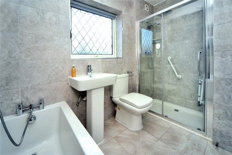The accommodation briefly comprises; entrance hall, living/dining room, fitted kitchen with ample worktop, downstairs WC, two double bedrooms with modern fitted wardrobes in the principal bedroom, a family bathroom which includes a bath and a separate shower, and a further single bedroom.
