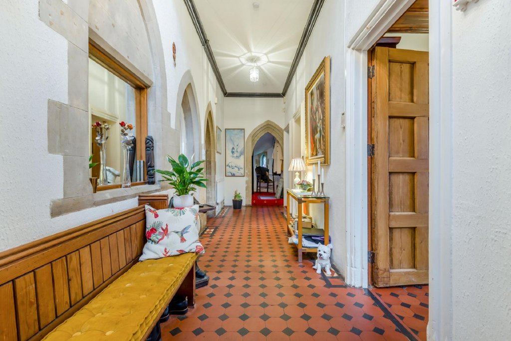 ‘’Visually beautifully in its setting, this Gothic style vicarage built in 1853 and designed by a renowned architect, immediately captivated us. Its architectural elegance both inside and out, plus its sense of grandeur ticked every box and we came to live here in 2015. The property has been cherished throughout its history and retains a wealth of fascinating traditions and architectural features. High ceilings, stunning Gothic windows, beautiful flooring, plus its exceptional, church style, internal doors all contribute to its character and presence. Whilst great care has been taken to preserve its heritage, thoughtful upgrades have been made to enhance comfort and modern living. Many of these improvements are unseen but highly practical, together with our refurbishment kitchen and bathrooms that blend functionality with quality.”