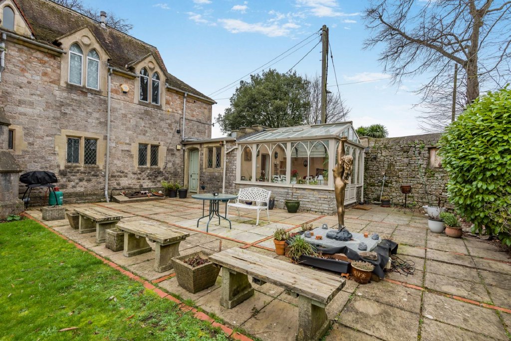 The house is surrounded by gardens to the east, south and west, which catch most of the day’s sunshine. These are mostly laid to lawns, with the south side on two levels with stone steps leading down. A large patio on the east side is perfect for dining and entertaining. It overlooks a pond, gardens to the south of the house and St Mary’s Church, which the architect Henry Woodyer also helped to restore.