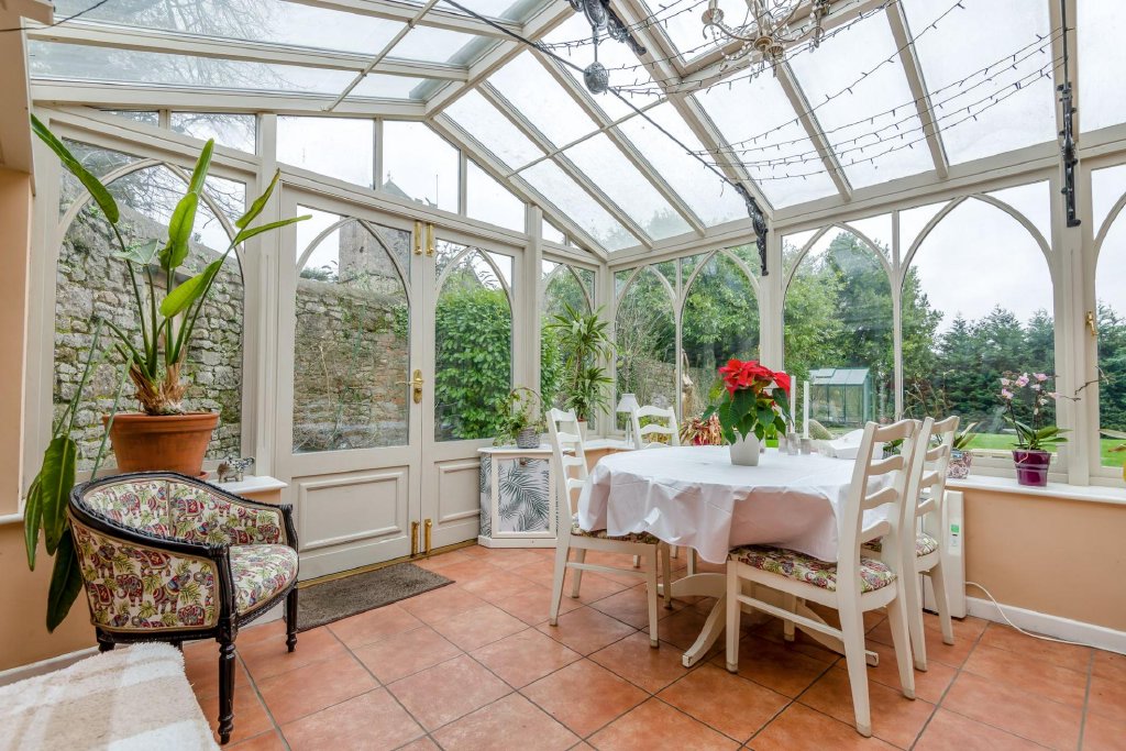 Other rooms on the ground floor include a study, two WCs and a boot room, the latter leading to a light-filled Amdega conservatory, carefully designed to be in keeping with the house, which looks out over the gardens.