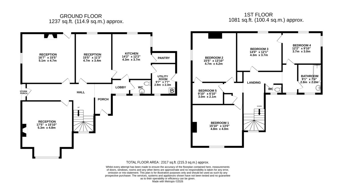 The first floor is centred around a broad landing, leading to five well sized bedrooms and bathroom.